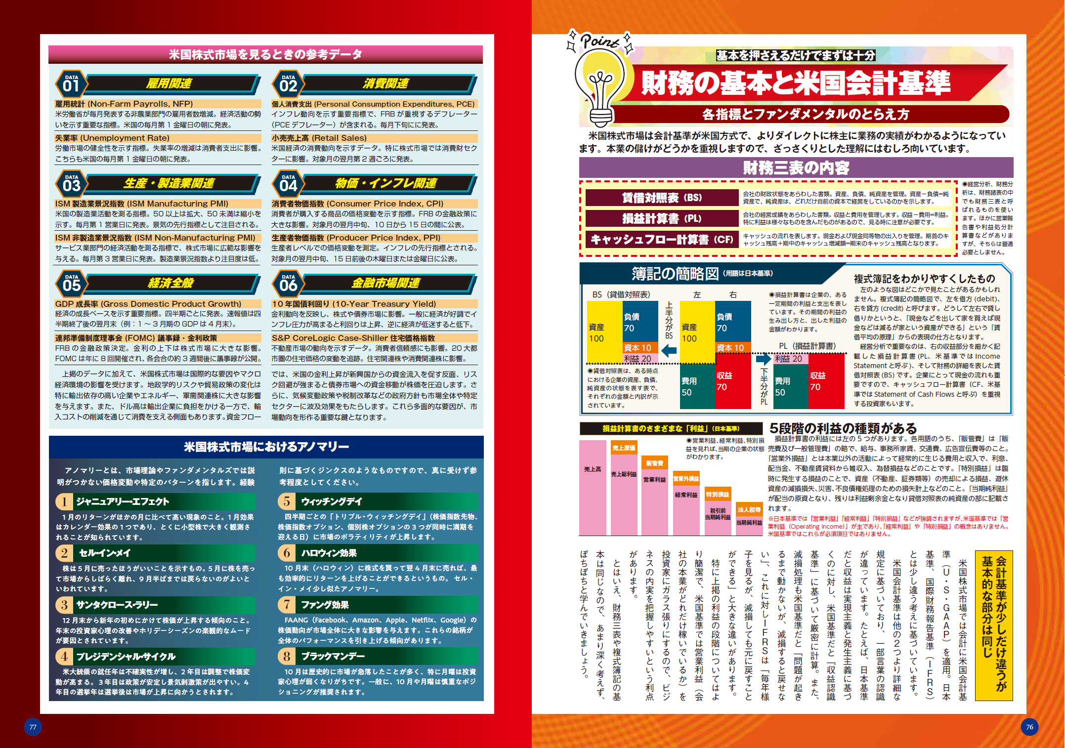 特別企画では、米国株の指標や財務、会計基準、経済指標、アノマリーまで簡単に解説。日本株との比較で解説しましたので、体感的に理解ができます。米国株投資の参考にしてください。