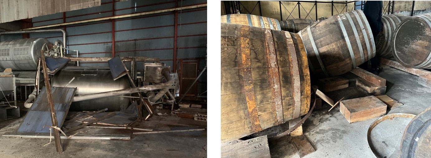しかし、能登半島地震で震度6強の揺れに襲われ、焼酎を熟成するタンクの多くが傾き、工場内のほとんどの機械が壊れるという大打撃を受けました。製造の再開には新しい機械の入替が必要です。現在は震災前に製造して貯蔵していたタンク100本分の焼酎を販売しながら、再建を目指しています。。