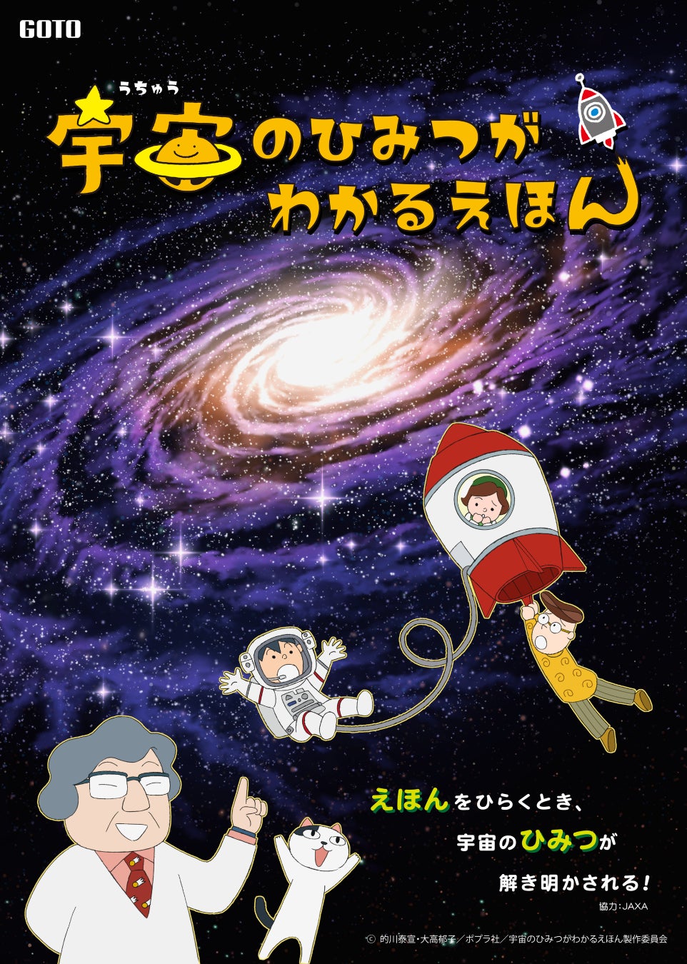 科学絵本「宇宙のひみつがわかるえほん」がプラネタリウム番組に! 仲良し3人組のもっくん・そらちゃん・かいくんが、宇宙のことなら何でも知っているタコロス先生&不思議なネコと一緒に、宇宙のひみつに迫ります。