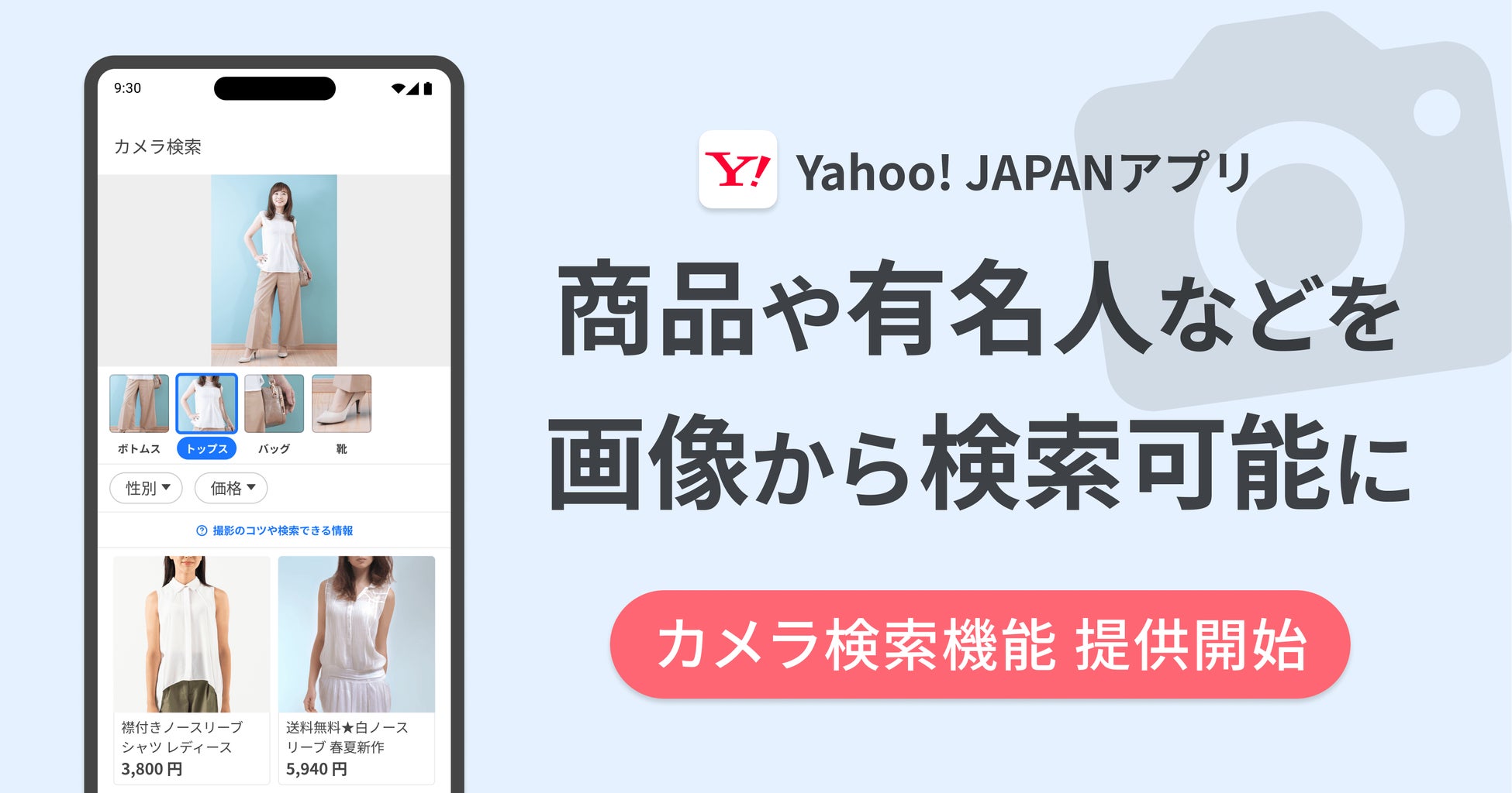 LINEヤフー株式会社(以下、LINEヤフー)が提供する「Yahoo! JAPAN」アプリ(iOS版、Android版)は、文字入力が不要で、画像から似ている商品や人物などを検索できる「カメラ検索機能」の提供を開始しました。