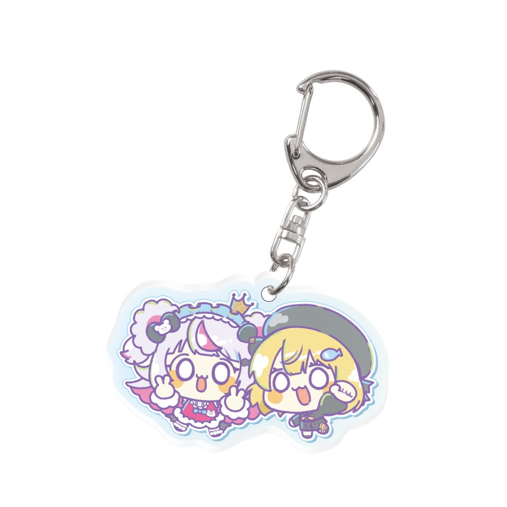 お互いの台座がつながる仕様の「つながるアクリルスタンド」をはじめ、ペアで持ちたくなる「アクリルキーホルダー」「ステッカー」など、2人の世界観をおそろいで楽しめるアイテムが揃っています。