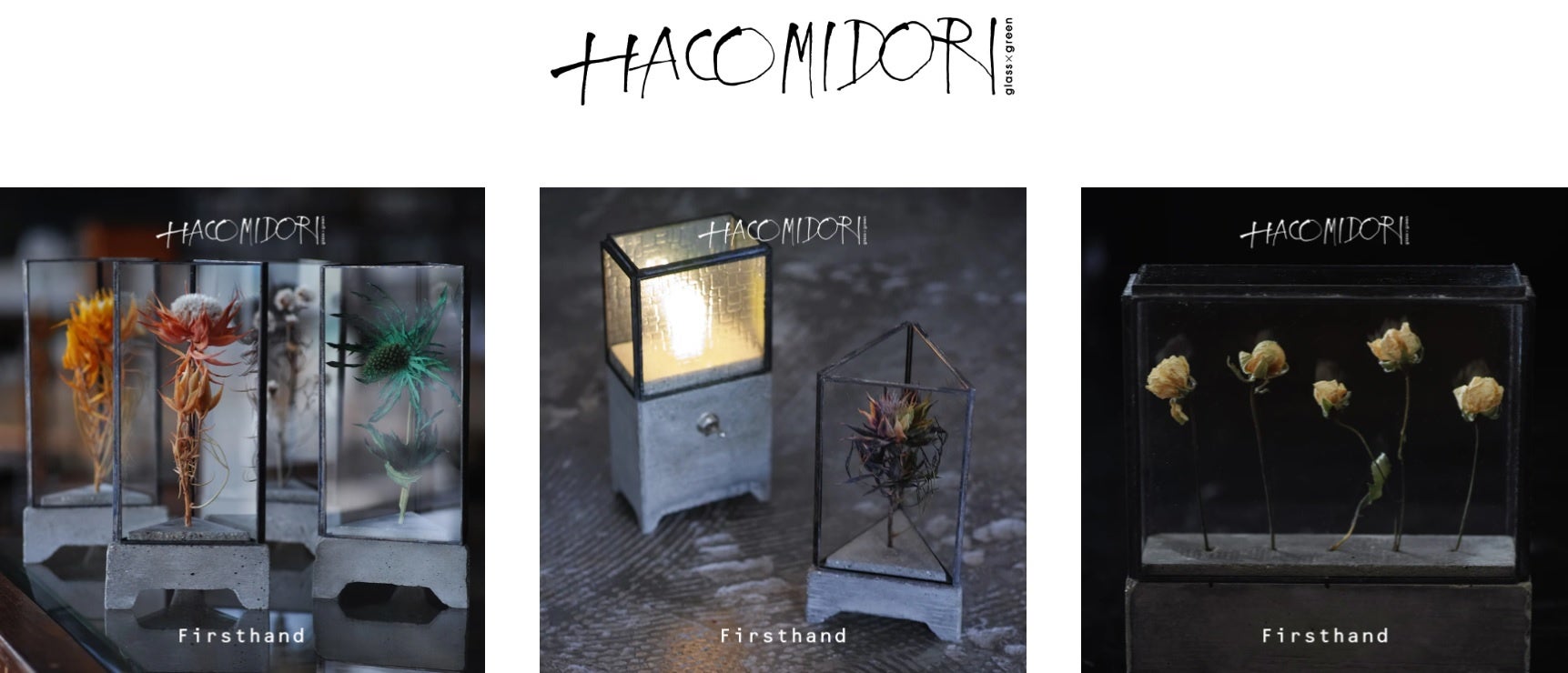 家屋を解体し、季節が過ぎ、役目を終えたガラスと、草木花々。”美しいと思ったから”それだけで、つくる理由としてはじゅうぶんだと思えた。植物の圧倒的な造形美を閉じ込めて、あなたのもとへ。窓から風景を眺めるように。ハコに、ミドリを。ハコミドリ。