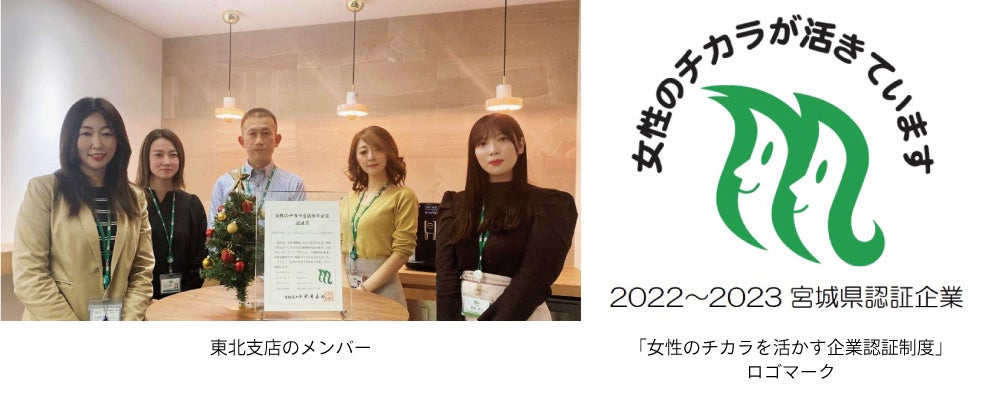 宮城県「女性のチカラを活かす企業認証制度」は、働きやすい職場づくりやワーク・ライフ・バランスに取り組む企業を応援するため、「女性の登用・配置状況」や「仕事と家庭の両立支援」等の項目において、一定基準を満たした企業を宮城県知事が認証する制度です。