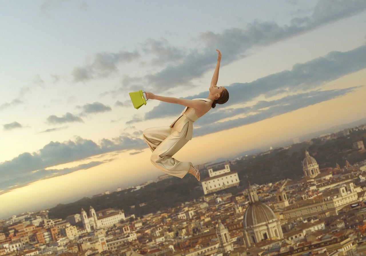 その特徴は、アジョア・アボアーによって体現されました。モデルで女優、そして若い女性たちの擁護者でもある彼女は、フェンディ ウーマンの典型です。ムービーでは、「ピーカブー」の力を超自然的にエンパワーされた彼女が、夢のような空想の世界に住み、解放されて軽やかに浮遊し、ローマに建ち並ぶ屋根の上でスキップし、その後自分の運命を決めるべく地球に降り立ちます。