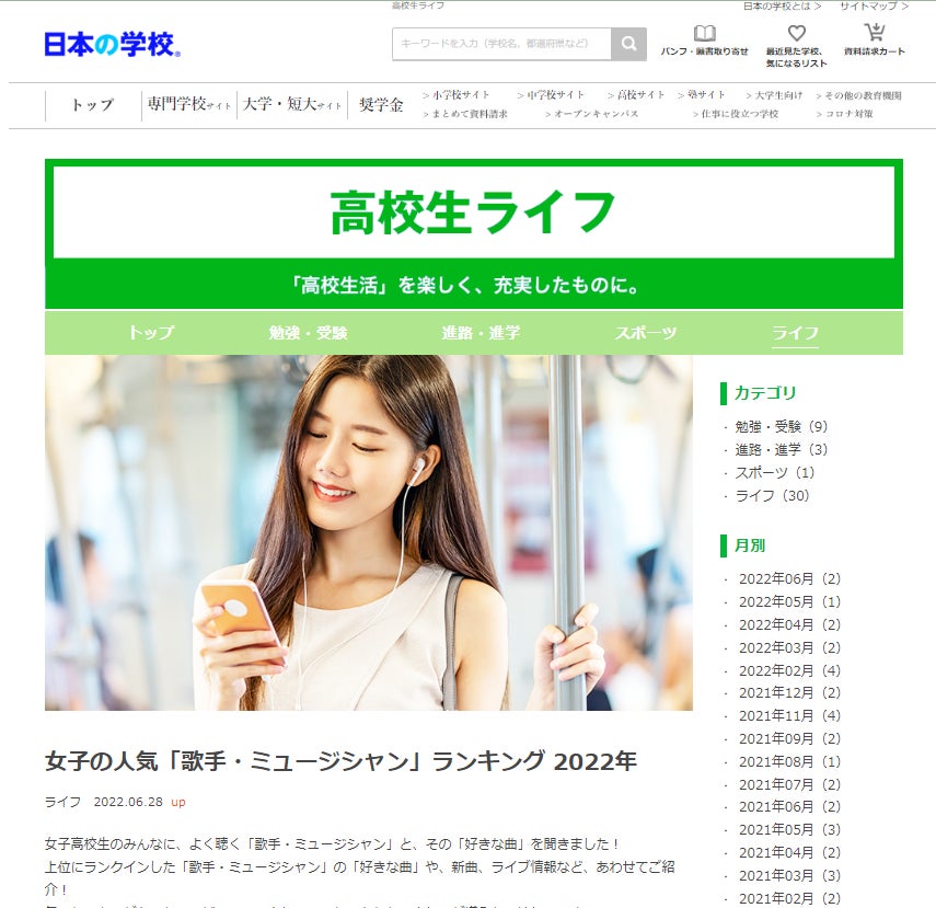 高校生ライフ「女子の人気「歌手・ミュージシャン」ランキング2022年」:https://school.js88.com/koukousei/life/44