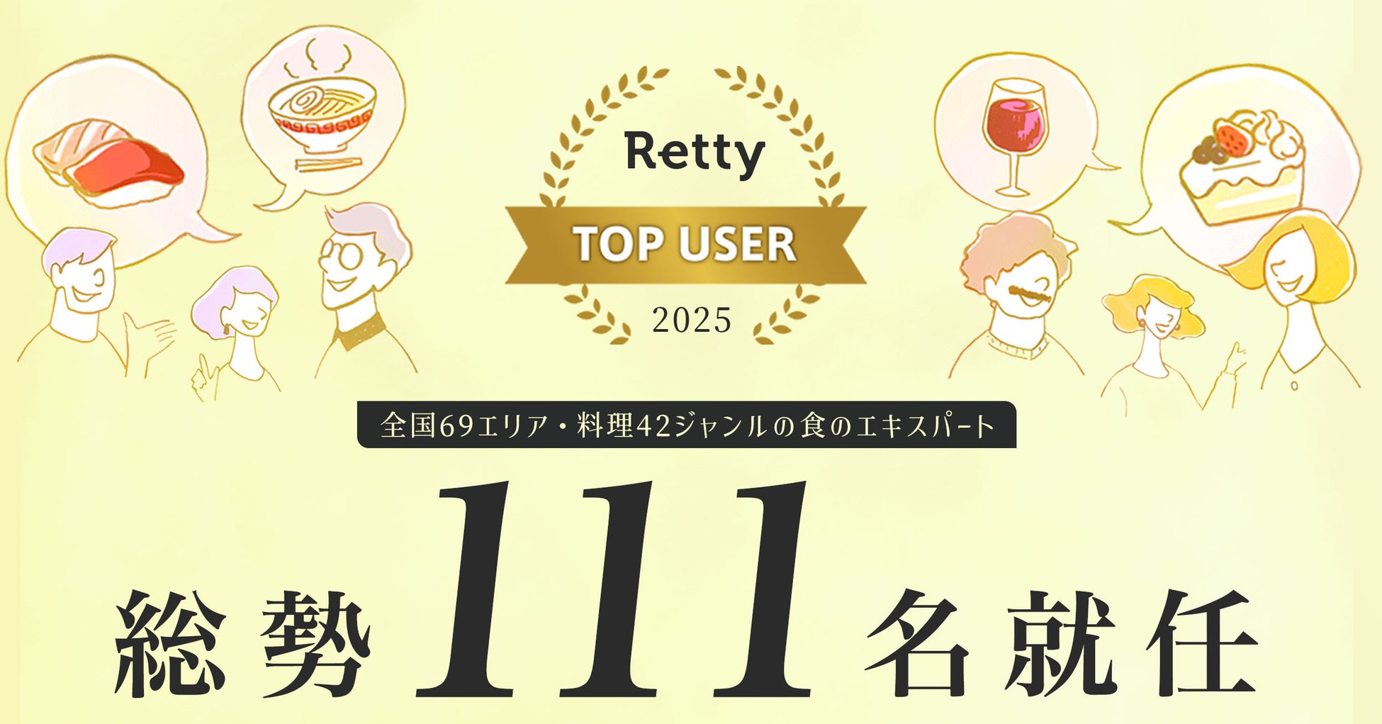 全国69エリア・料理42ジャンルの食のエキスパート「Retty TOP USER」2025年は111名が就任