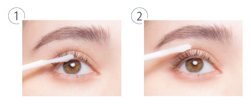 ・目に入らないように注意しながら上下のまつ毛の根元から持ち上げるように塗ってください。