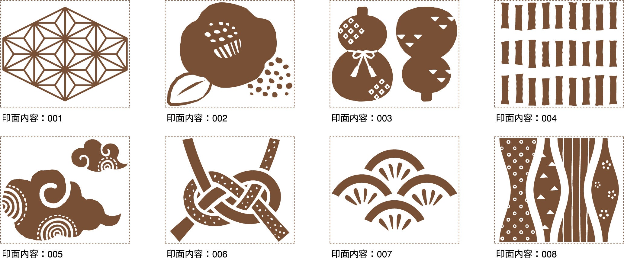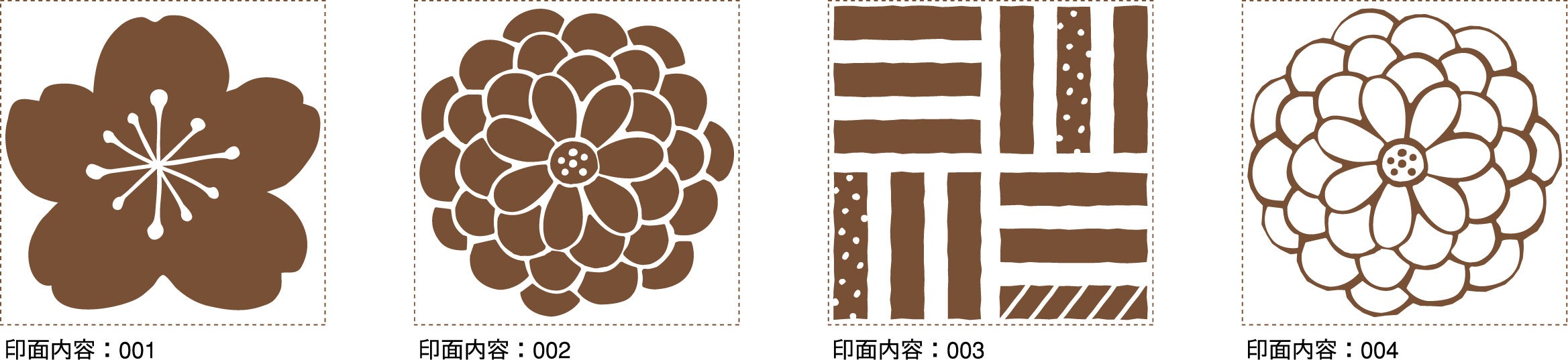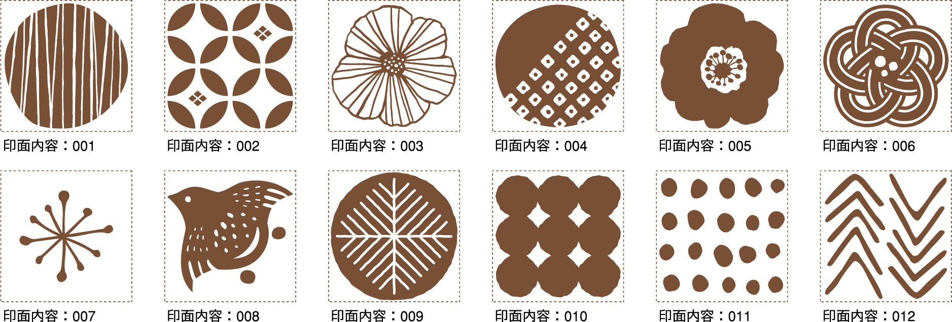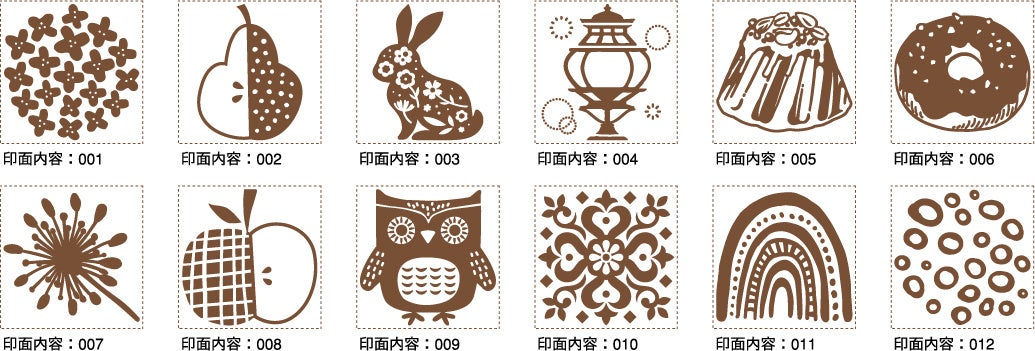 デザインは和柄・洋柄の2パターンをご用意。和柄は日本の伝統的な柄や桜をモチーフにした、年賀状やご祝儀袋のアレンジにも使いやすいデザインです。洋柄はレース模様やスイーツをモチーフにした可愛らしいデザインで、バースデーカードやラッピングのデコレーションにもおすすめです。和柄・洋柄それぞれ24種類の豊富なデザインからお好みのはんこを選ぶことができます。