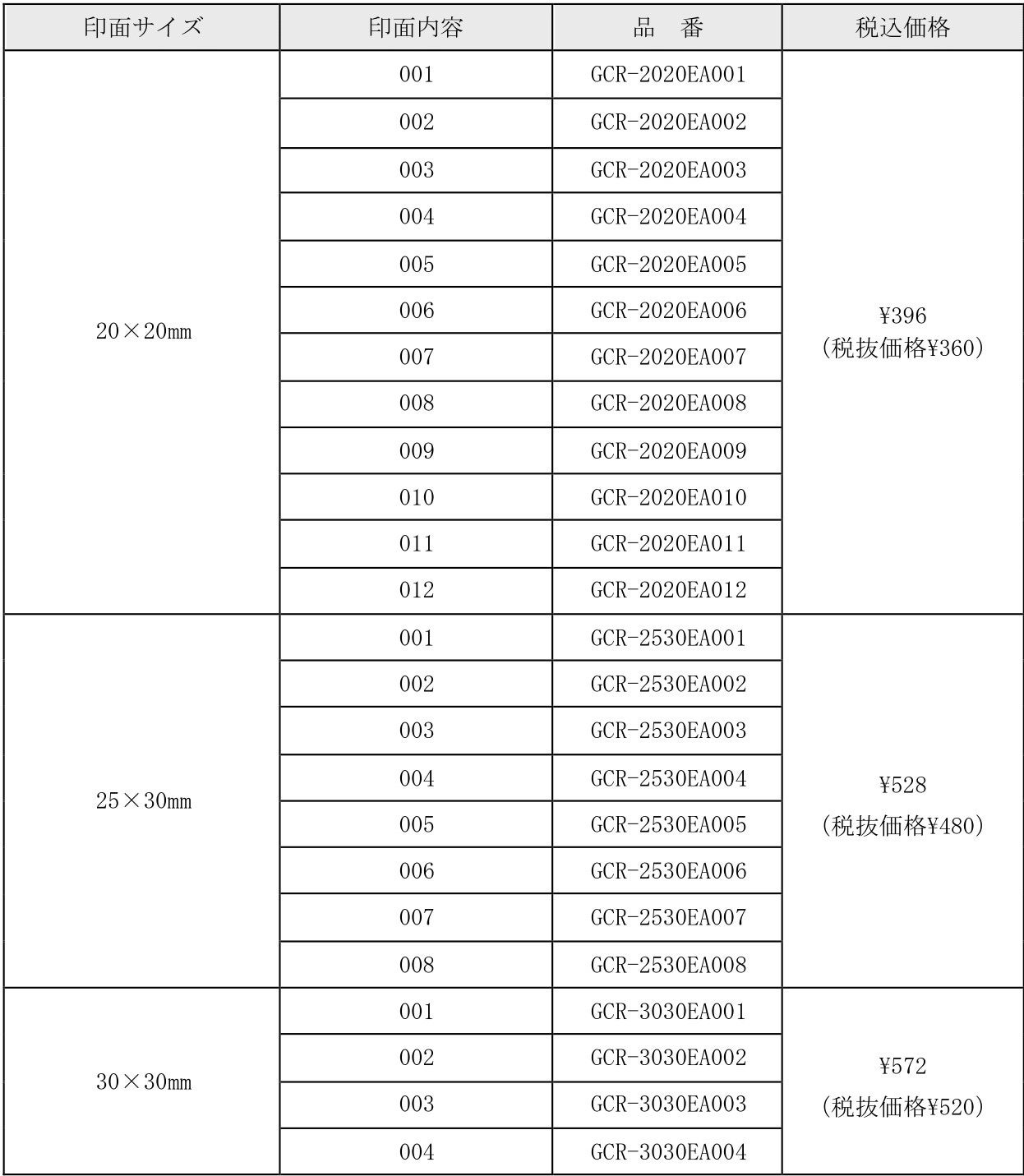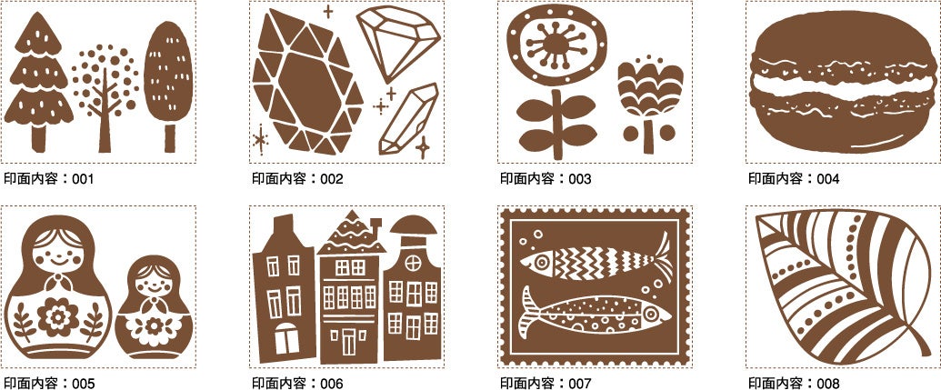 印面サイズは組み合わせて楽しめる20×20mm、「いろづくり」のラベルに押すのにもぴったりな25×30mm、アクセントにも使える30×30mmの3パターン。目的に合わせてさまざまな使い方をお楽しみいただけます。