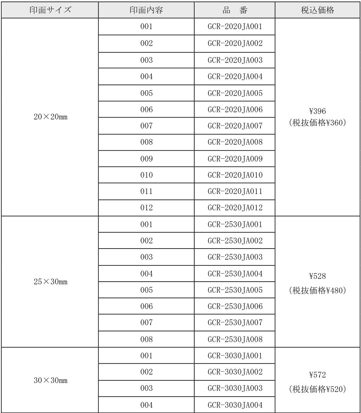 ・アレンジが広がる豊富な印面サイズ