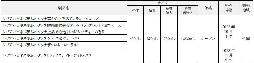 P&Gジャパン合同会社(本社:神戸市)は、柔軟剤ブランド『レノア』にラインアップする「レノアハピネス夢ふわタッチ」シリーズをリニューアルし、2023年10月上旬より発売いたします。