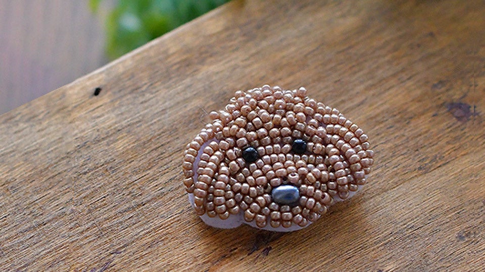 ビーズ刺繍で作る トイプードルのブローチ(ブラウン)