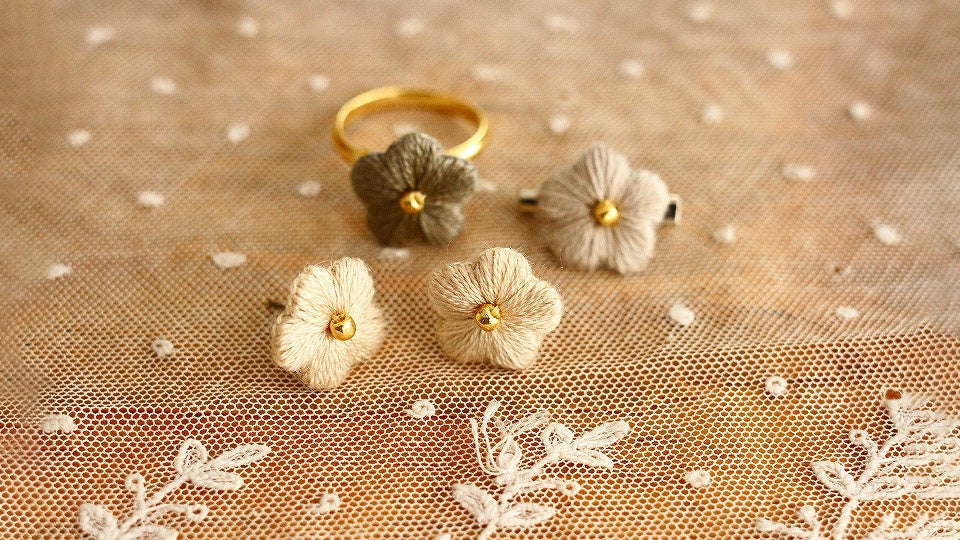 立体刺繍で作る小花のリング・ブローチ~初心者レッスン~