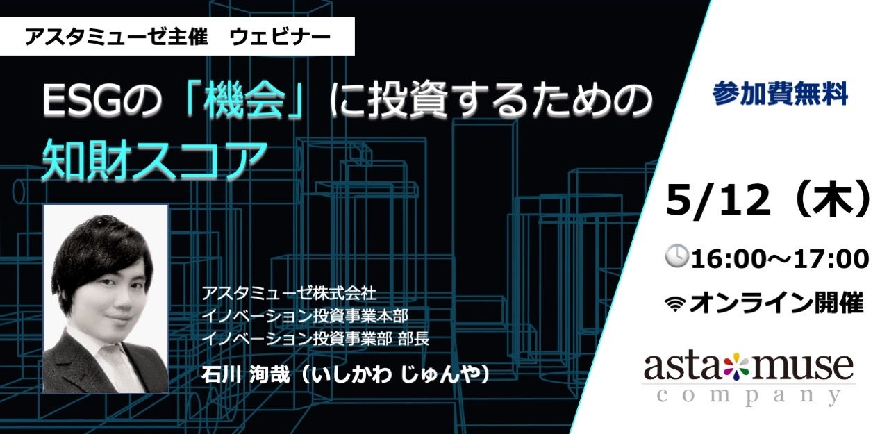 【5月12日(木)16時〜】アスタミューゼ主催ウェビナー「ESGの「機会」に投資するための知財スコア」