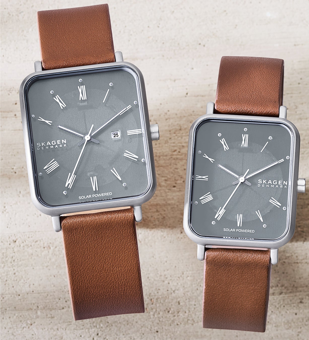 ソーラーパワームーブメントを搭載した「GRENEN SOLAR」は、37mmのケースサイズに、シルバートーン、ローズゴールドトーン、チャコール、ブラックのケースカラーを含む5つの豊富なバリエーションで展開いたします。ケースにはリサイクルされたステンレススティールを50%以上使用した素材を採用し、ストラップにはSKAGENのアイコンであるステンレススティール製のメッシュブレスや、環境に配慮し製作されたレザー・ワーキング・グループ(LWG)認証のレザーストラップなどを組み合わせ、身につける人の個性に合わせた選択が可能となります。