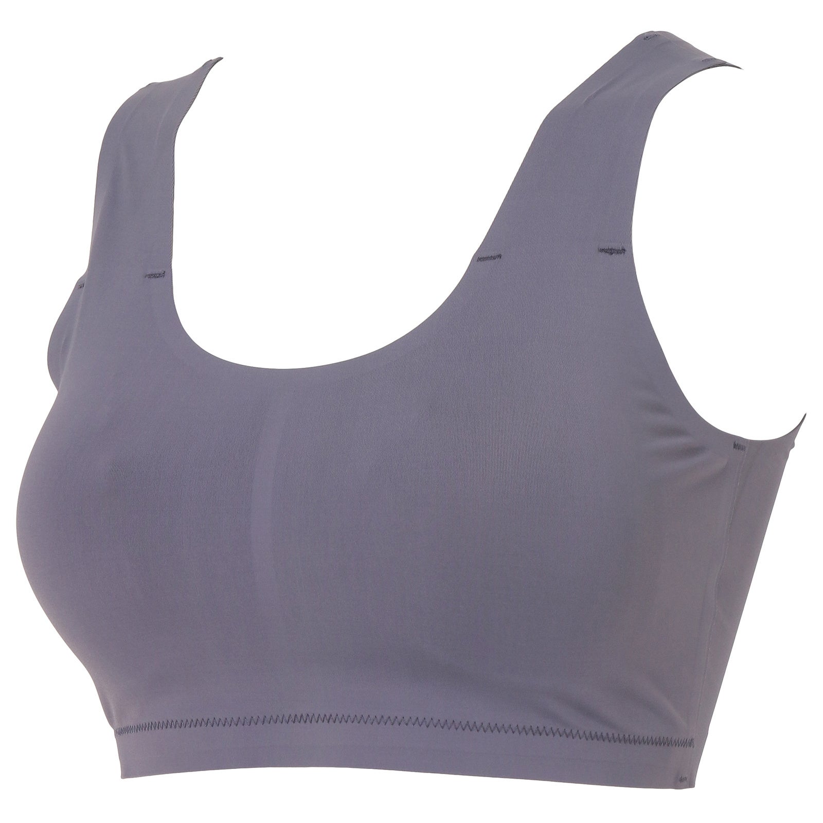 かぶりタイプのノンワイヤーブラ。縫い代を接着したフラットな仕様でアウターにひびきにくいアイテムです。幅広設計の肩紐はくいこみにくく快適な仕上がり。肌に当たってチクチクしにくいタグレス仕様です。