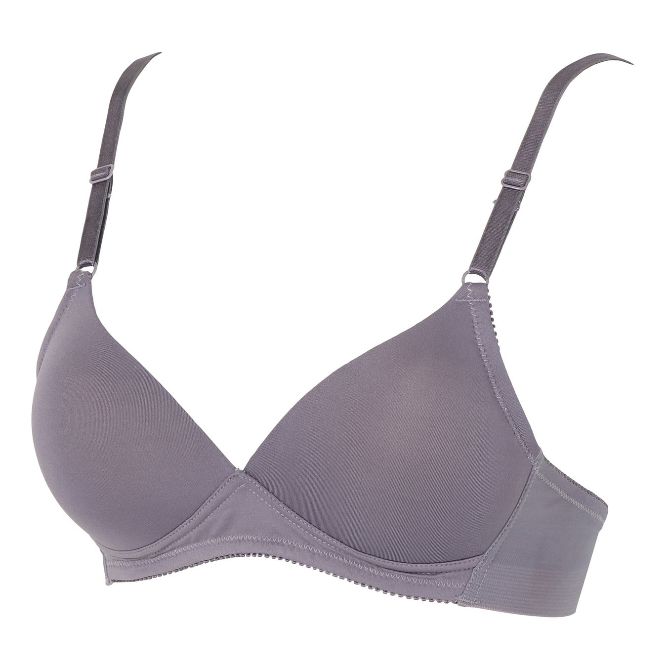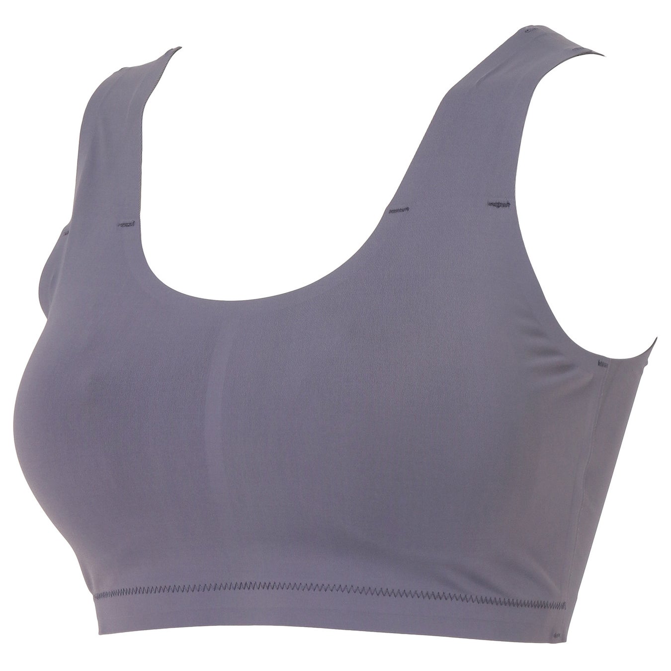 シームレスのカップに細かい穴をあけて通気性を良くしたノンワイヤーブラ。シンプルなデザインと脇アンダー部分のヘム仕様で段差を軽減することで、すっきりとアウターを着こなせるアイテムです。
