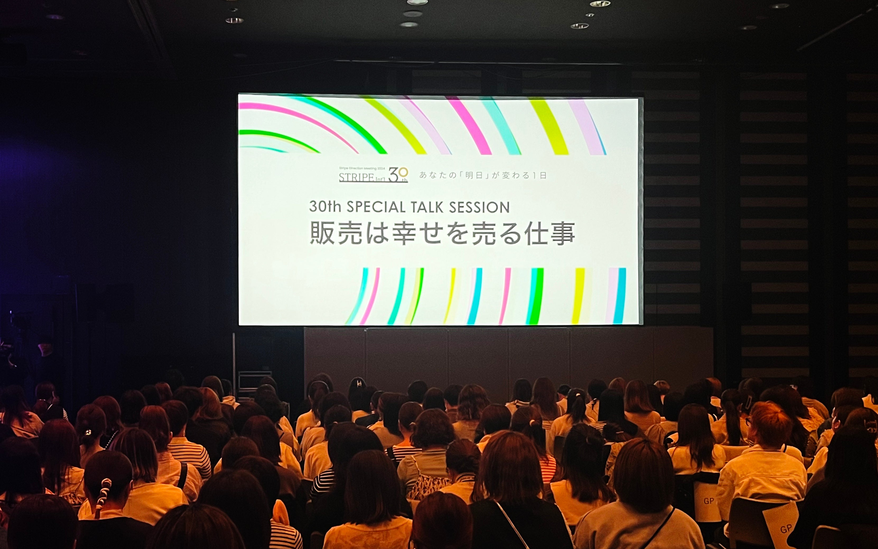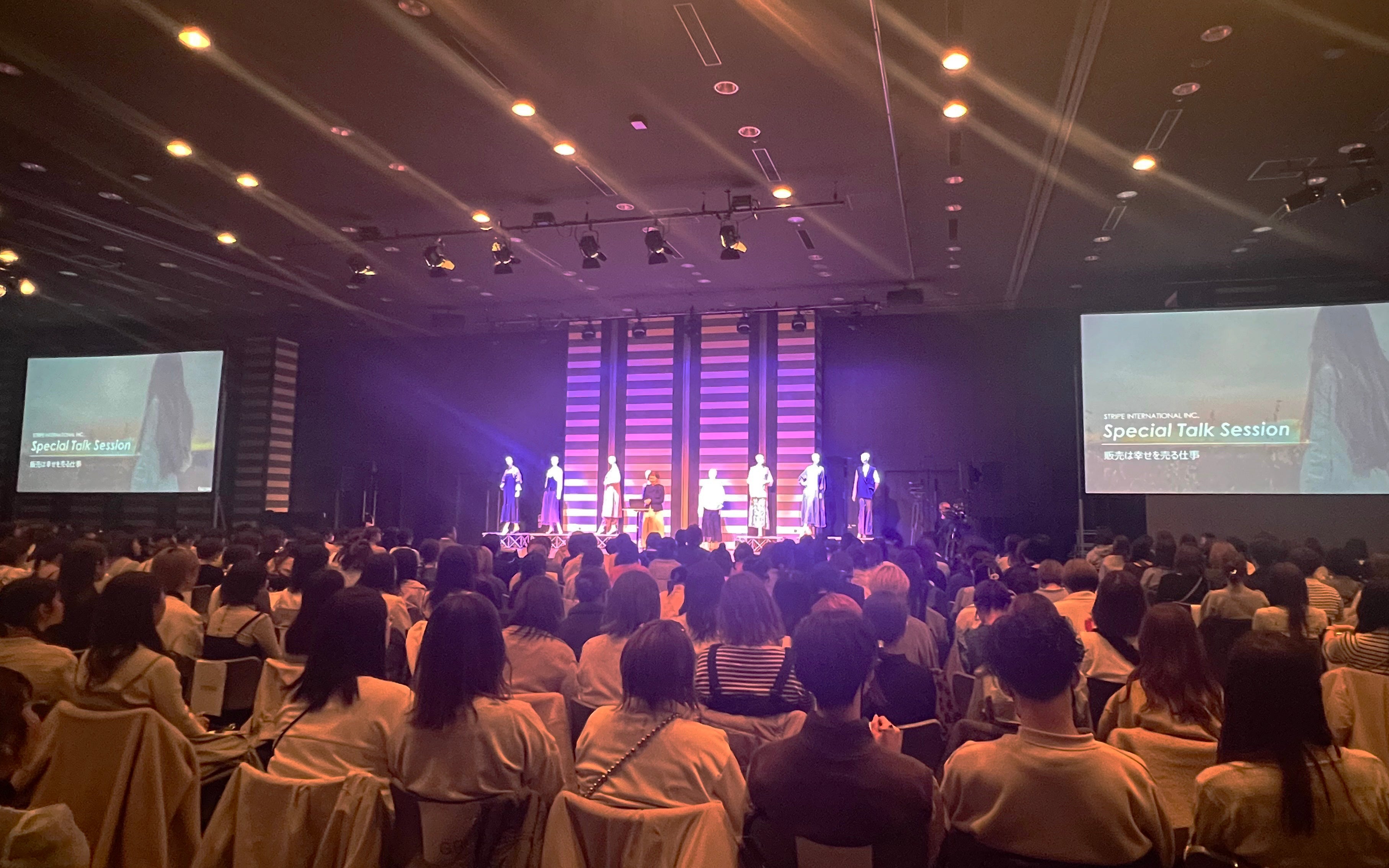 株式会社ストライプインターナショナルの創立30周年を記念した本イベントには、全国から店舗責任者と本部スタッフなど約900名が参加。販売のプロとしてさらにスキルを磨いてほしいという川部社長の思いを受け、秋山は自身の経験をベースに「販売は幸せを売る仕事」をテーマでお話しました。