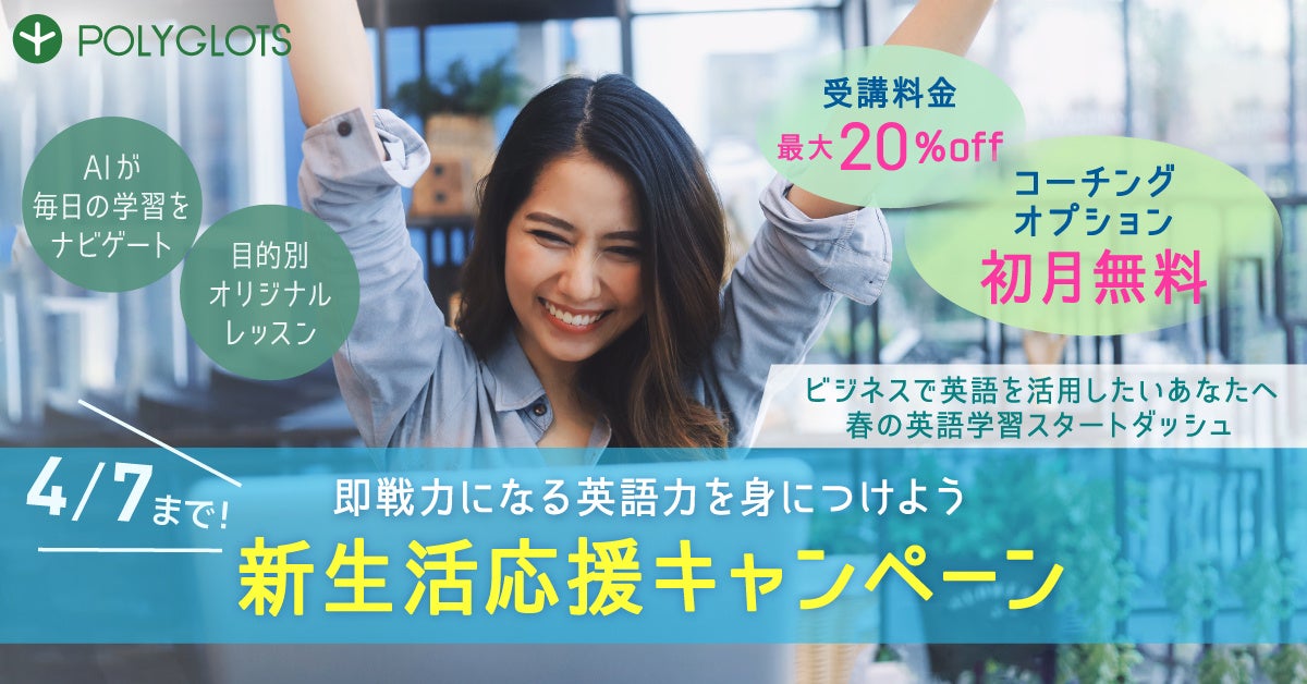 【新生活応援キャンペーン開催中】即戦力になる英語力を身につけよう! - 株式会社ポリグロッツ - 2024年3月18日(月)~2024年4月7日(日)