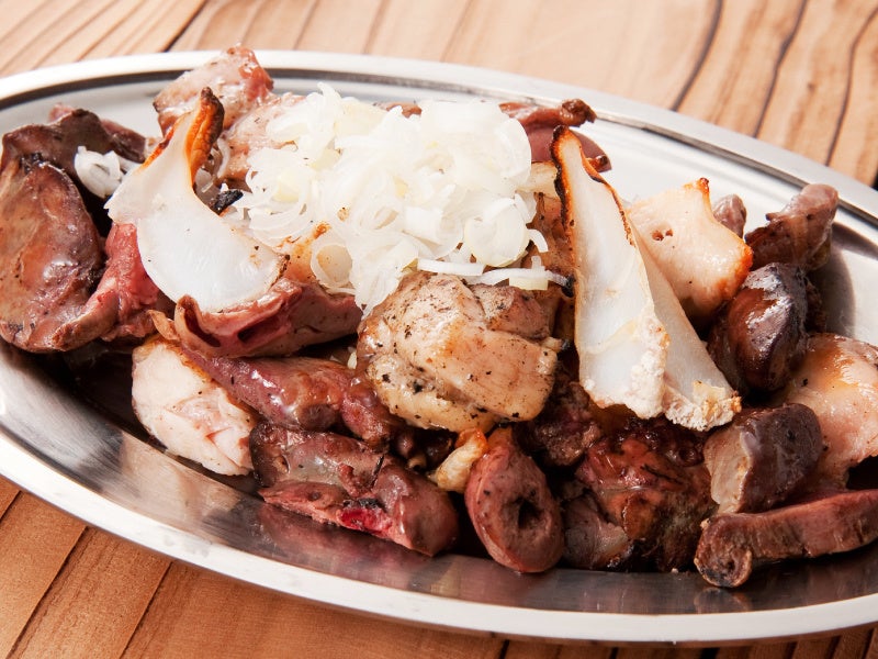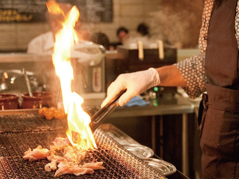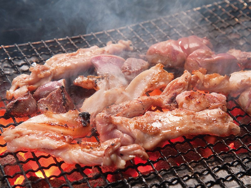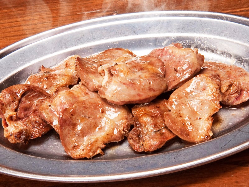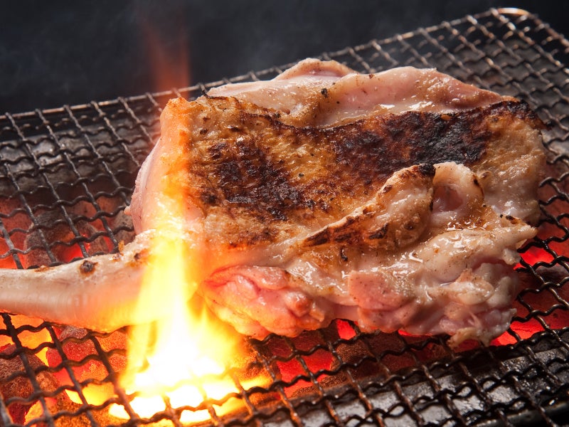使用する鶏が旨い理由は、宮崎の温暖な大自然の中、霧島連山からの霧島裂罅水(きりしまれっかすい)と呼ばれるミネラルたっぷりの天然地下水を飲み、自然の飼料でストレスなく育つ生後49日という若々しく清らかな若鶏を使用しているから。また、その若鶏を宮崎で加工し超速で盛岡に直送するため鮮度抜群なことはもちろん、その鮮度を保つため人の手に触れることをできるだけ避け、串にして3本~4本分の肉を敢えて串打ちにせず直火焼きにして皿盛りで提供します。これにより、臭みがない若鶏ならではの脂の甘さ、みずみずしくジューシーなフレッシュ感、程よく締まってプリプリと弾力がある肉質をダイレクトに味わえます。