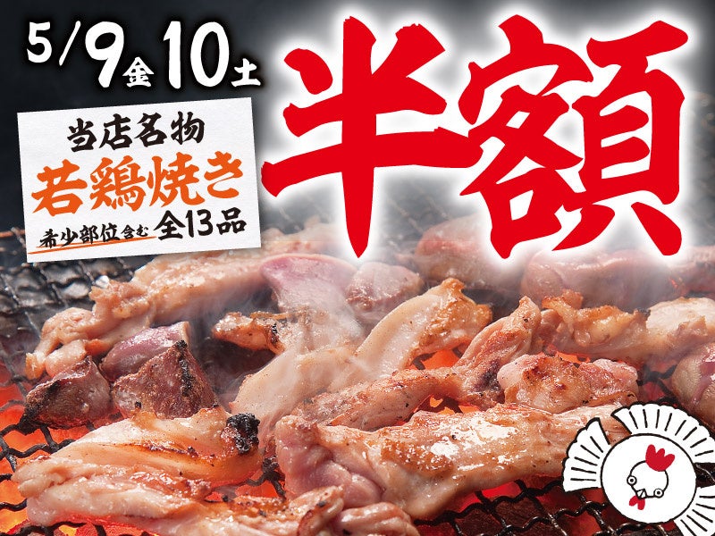 このような思いから、2025年5月9日(金)・10日(土)の2日間限定ですが、人気の若鶏焼き全13品を“半額”にて提供する記念イベントを開催します(詳細後述)。