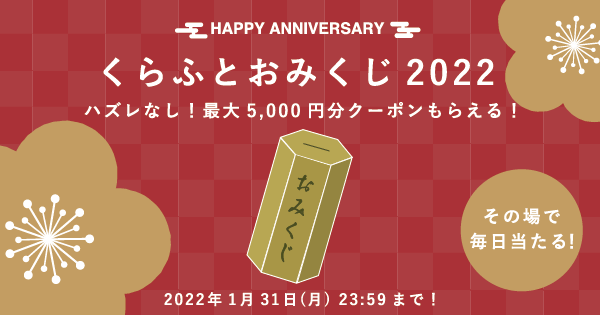 2022年1月31日まで。毎日ひけるおみくじの結果に応じてクーポンがもらえます!