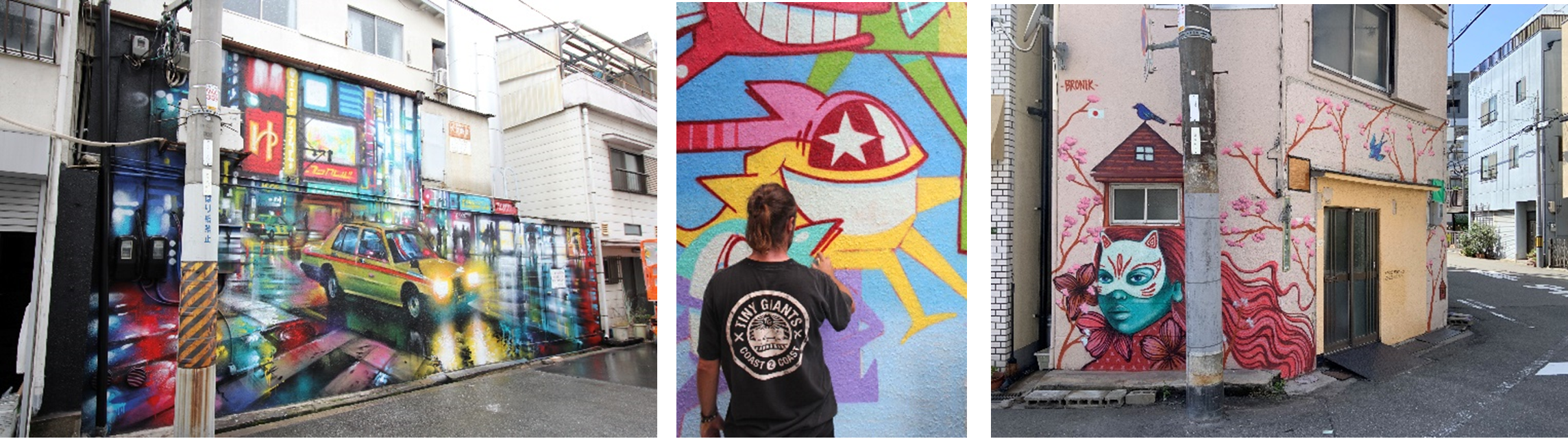 ミューラルとは日本語で「壁画」という意味で、ストリートアートの一種です。ミューラルは、落書きとは異なり、街中の許可を得た壁面にダイナミックな作品を描くアートを指します。近年、当社は、ファッションや音楽、スポーツやゲームなど世界中のさまざまな分野でINSTAXの協業を積極的に推進しています。壁面に合わせてその場限りの1枚を描き、その1枚を通じてさまざまな人たちが想いを馳せ、コミュニケーションが生まれるミューラルは、撮ったその場でプリントでき、想いを伝えられるINSTAX“チェキ”と通じる価値があると考えています。