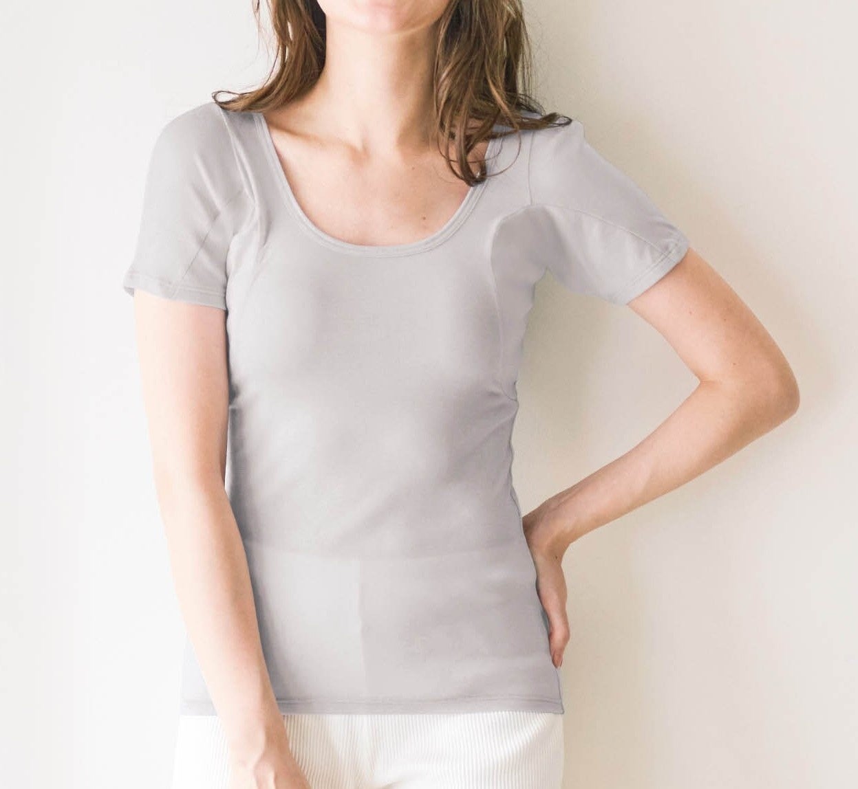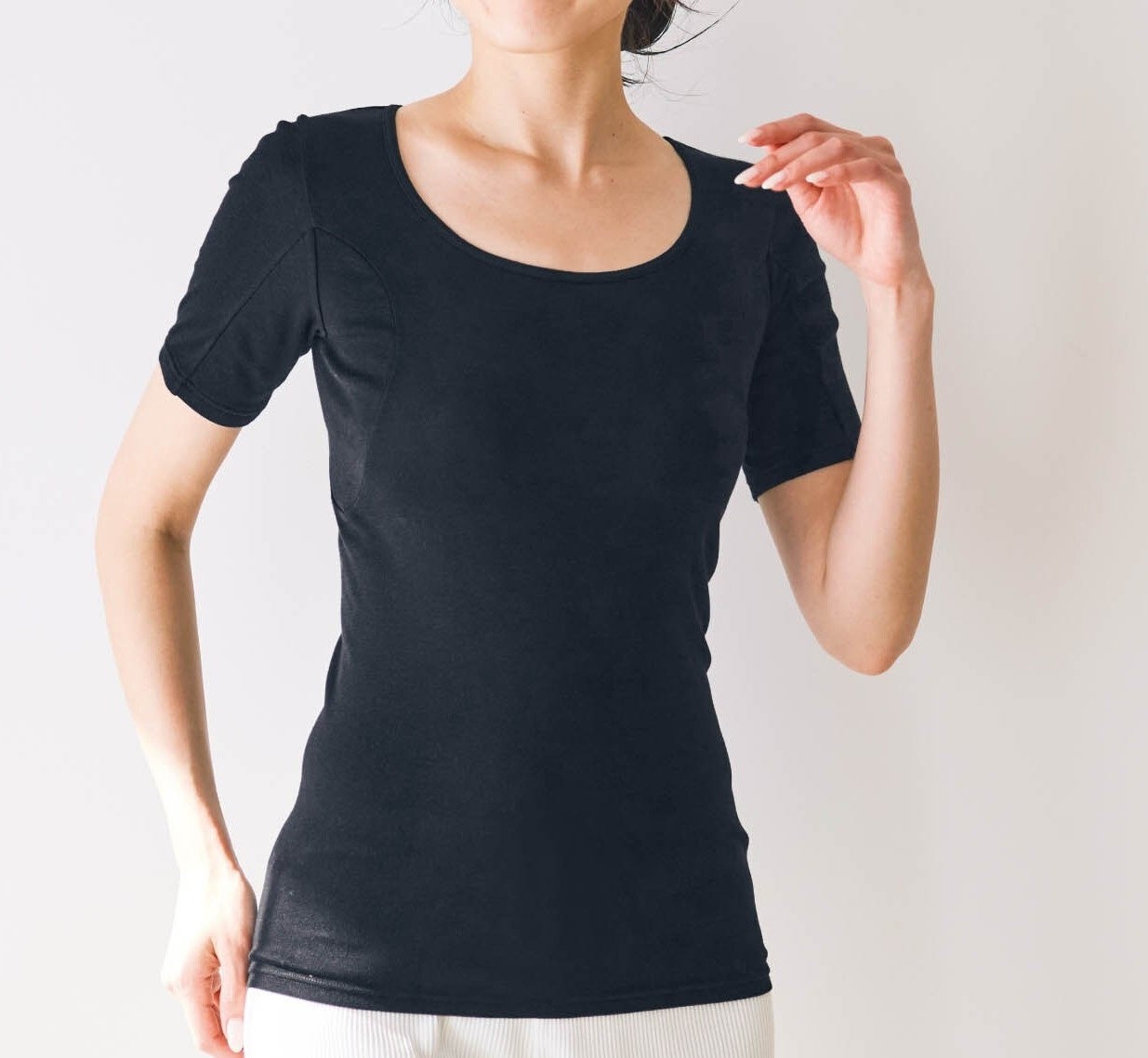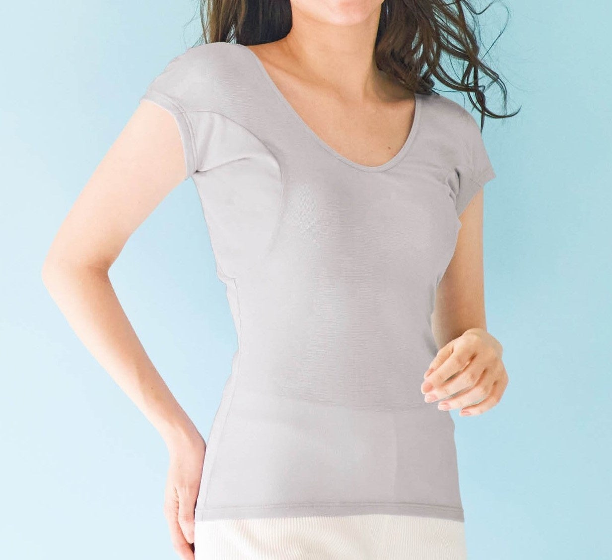汗取りインナー・綿混ワイドネックフレンチ袖(大汗さん)