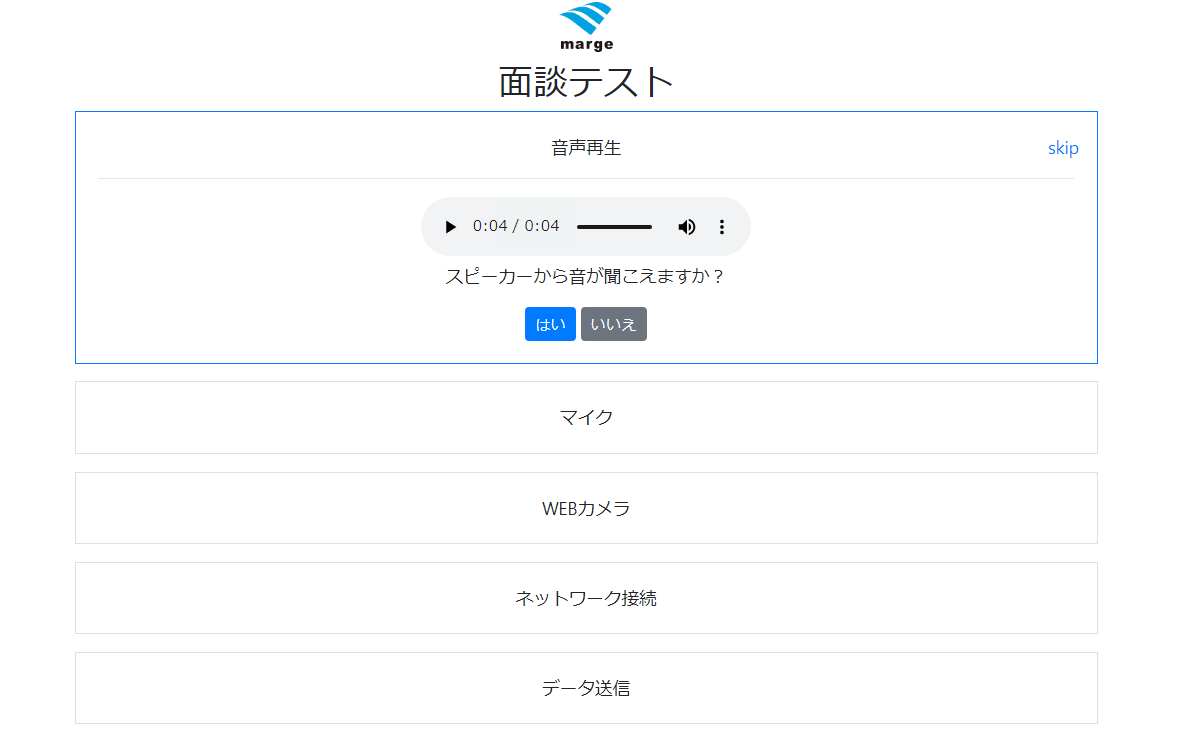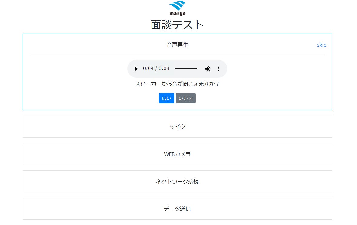 人材派遣・人材紹介・業務請負のためのオンライン面接ツールSOKUMENは、面接ルーム入室直前にカメラ・マイク、通信のテストができるページへ移動できる機能を追加実装致しました。