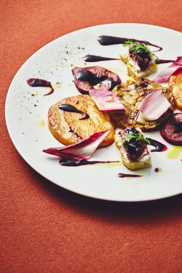 ・スカモルツァチーズ 無花果の赤ワイン煮とエンダイブのソテー