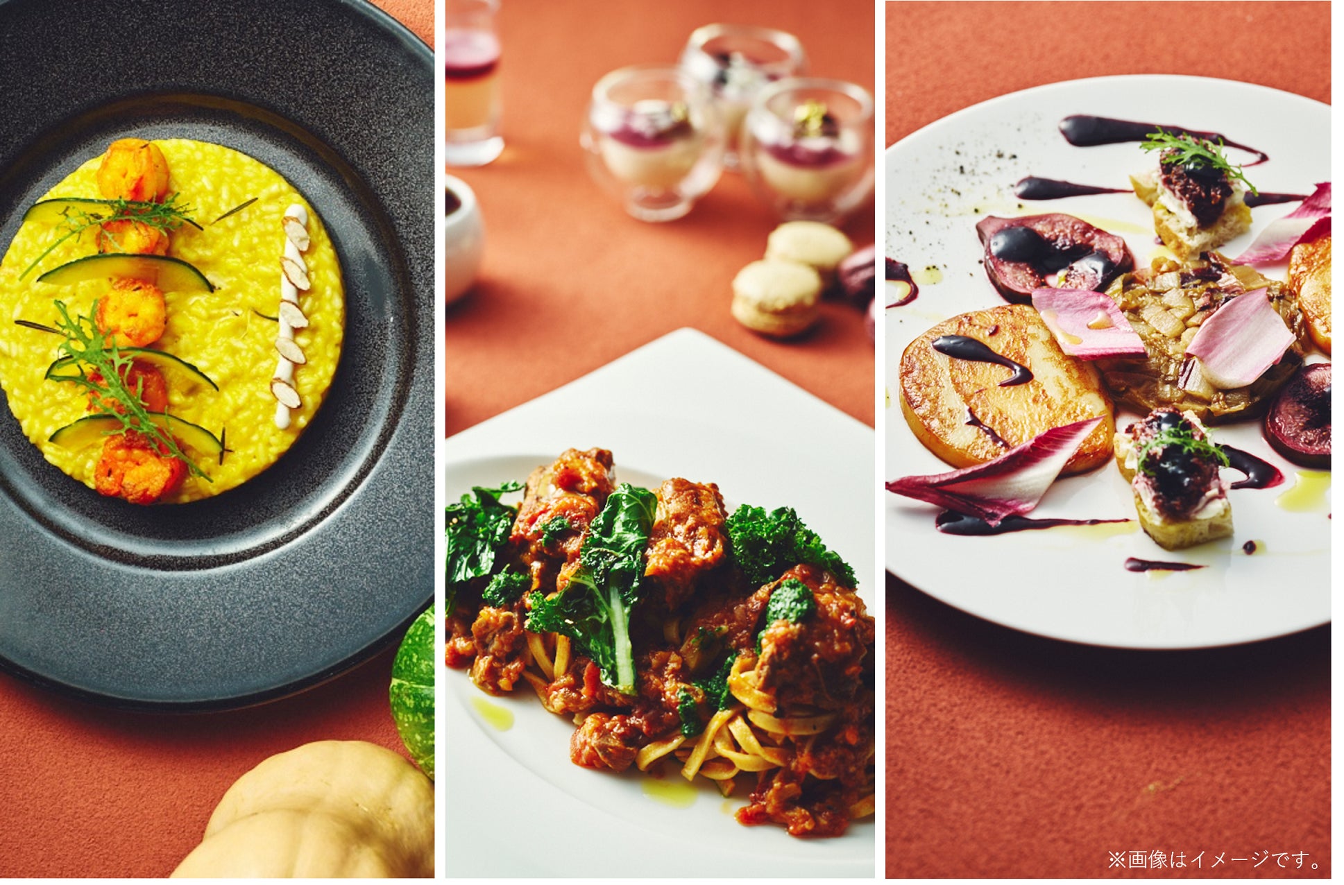 食欲の秋到来!ほくほくとした優しい甘さの栗やかぼちゃなど、秋に食べたい食材をたっぷりとつかったビュッフェメニュー。 美食の秋を味わいつくす、セミランチブッフェ「オータム ヴィヴァーチェ」