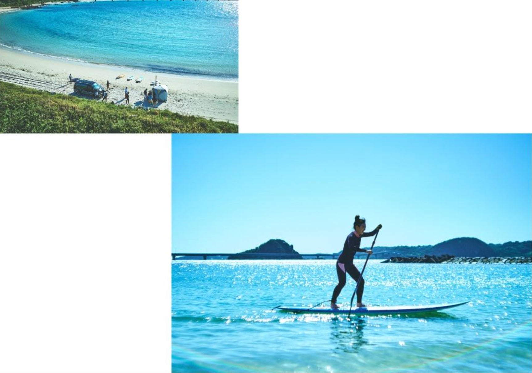 フランスのピアニスト コルトーも愛した厚島(孤留島)をバックに美しい海でSUP!その後は、海の幸を楽しみ、温泉でゆっくりする。大満足な宿泊プランです。