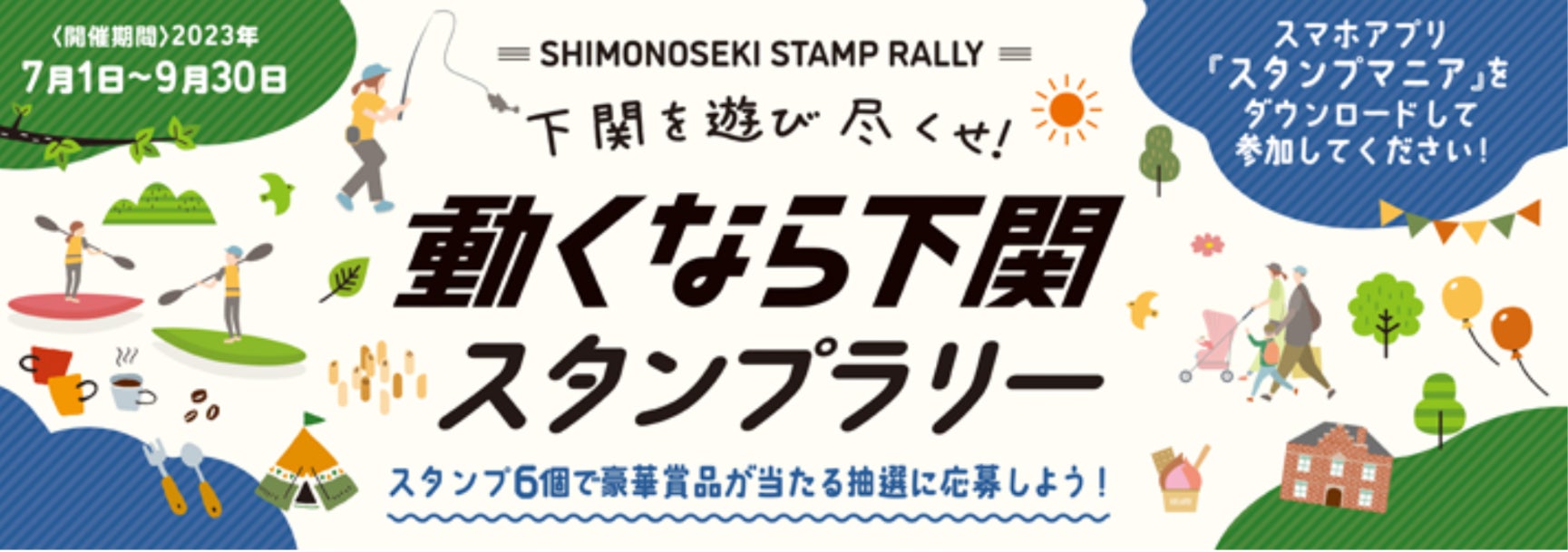 下関市内のアウトドア体験やものづくり体験などアクティビティをめぐり、スタンプを集めて豪華賞品が抽選で当たる「下関を遊び尽くせ!動くなら下関スタンプラリー」を期間限定で開催します。