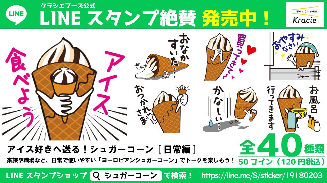 クラシエフーズ株式会社は、2022年4月25日(月)からコミュニケーションアプリ 「LINE(ライン)」で使用できる、”アイス好きへ送る!シュガーコーン[日常編]”のLINEスタンプ(全40種類)の販売を開始いたします。