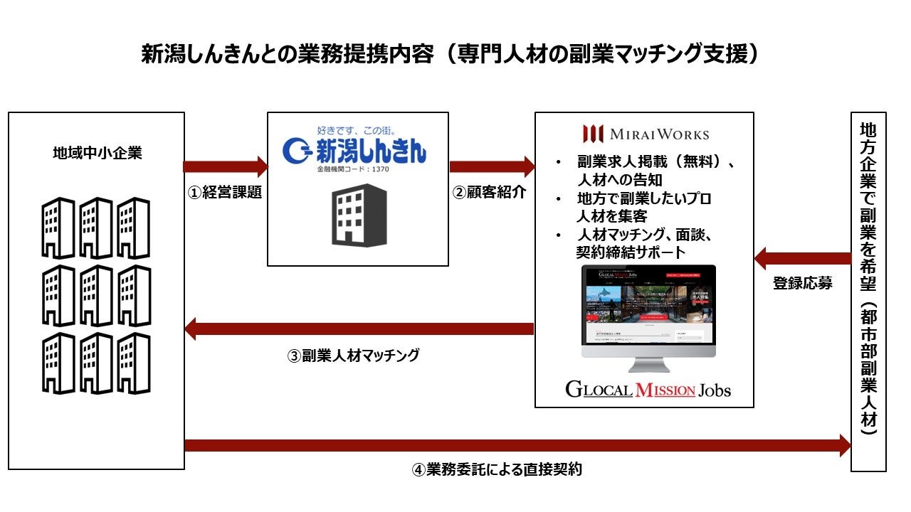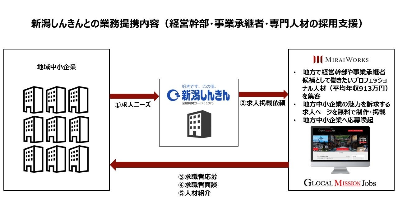 都市部人材16,000名以上が登録する『Glocal Mission Jobs(GMJ)』と提携することにより、自らのスキルを地域貢献に活かしたいプロフェッショナル人材と、新潟しんきんのお取引先をマッチングし、新潟しんきんのお取引先における人材課題解決の強化を目指します。