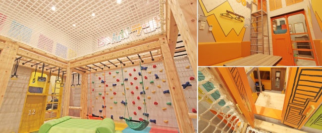 お子様用のボルダリングや、うんてい、ブランコ等、お子様なら誰でもワクワクできる空間に仕上げました。