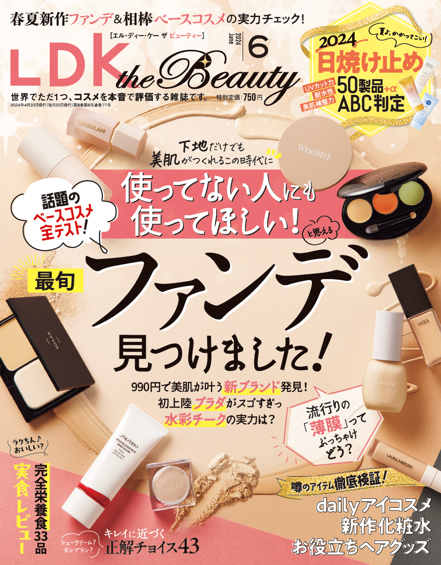 日焼け止め50製品の頂点に輝いたのは?お出かけシーズンに備えたい最新ベースメイクアイテムやヘアアイテムも紹介!【LDK the Beauty 2024年6月号】