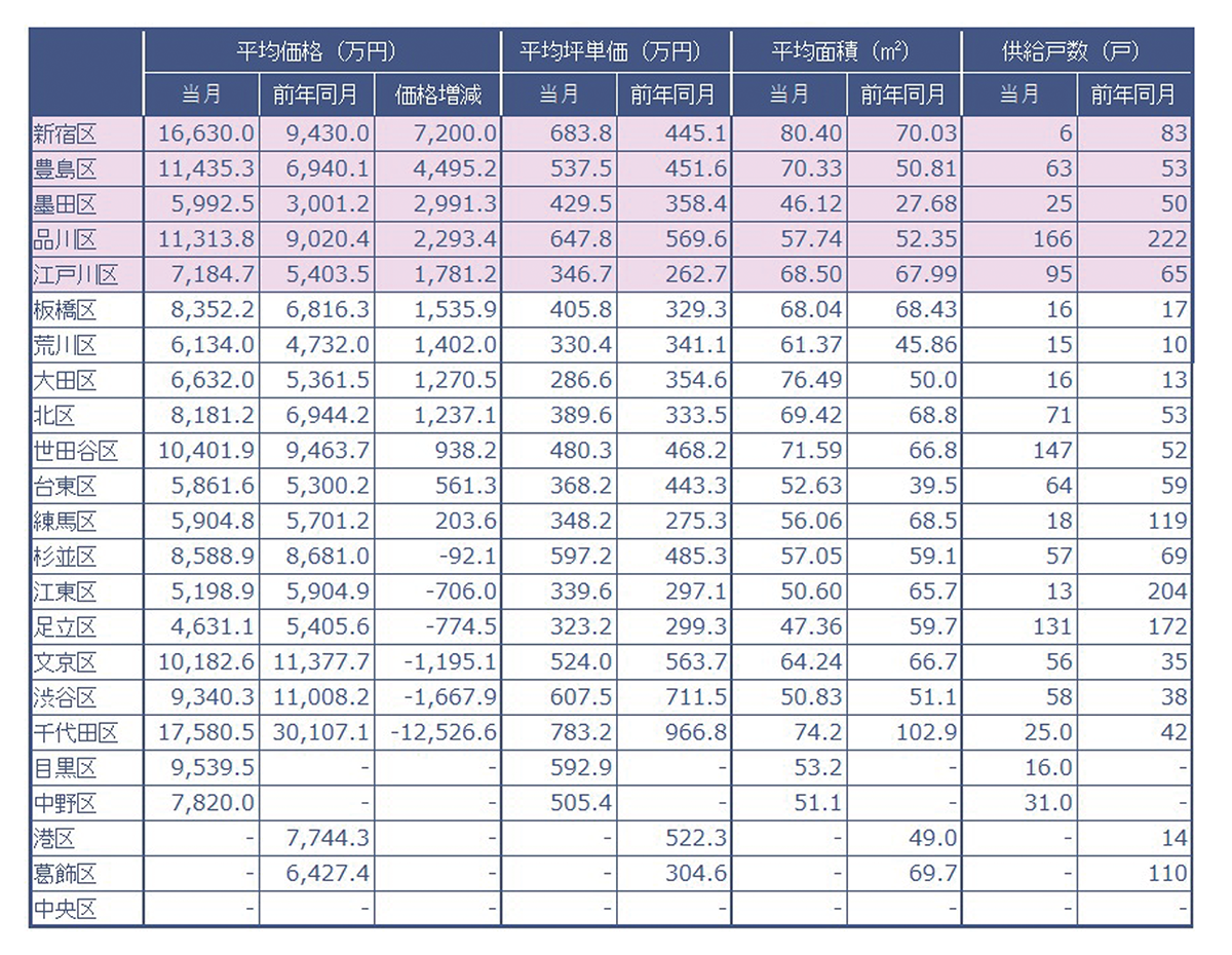 当社が調査した2023年9月の東京23区、行政区別分譲実績データ(速報値)です。