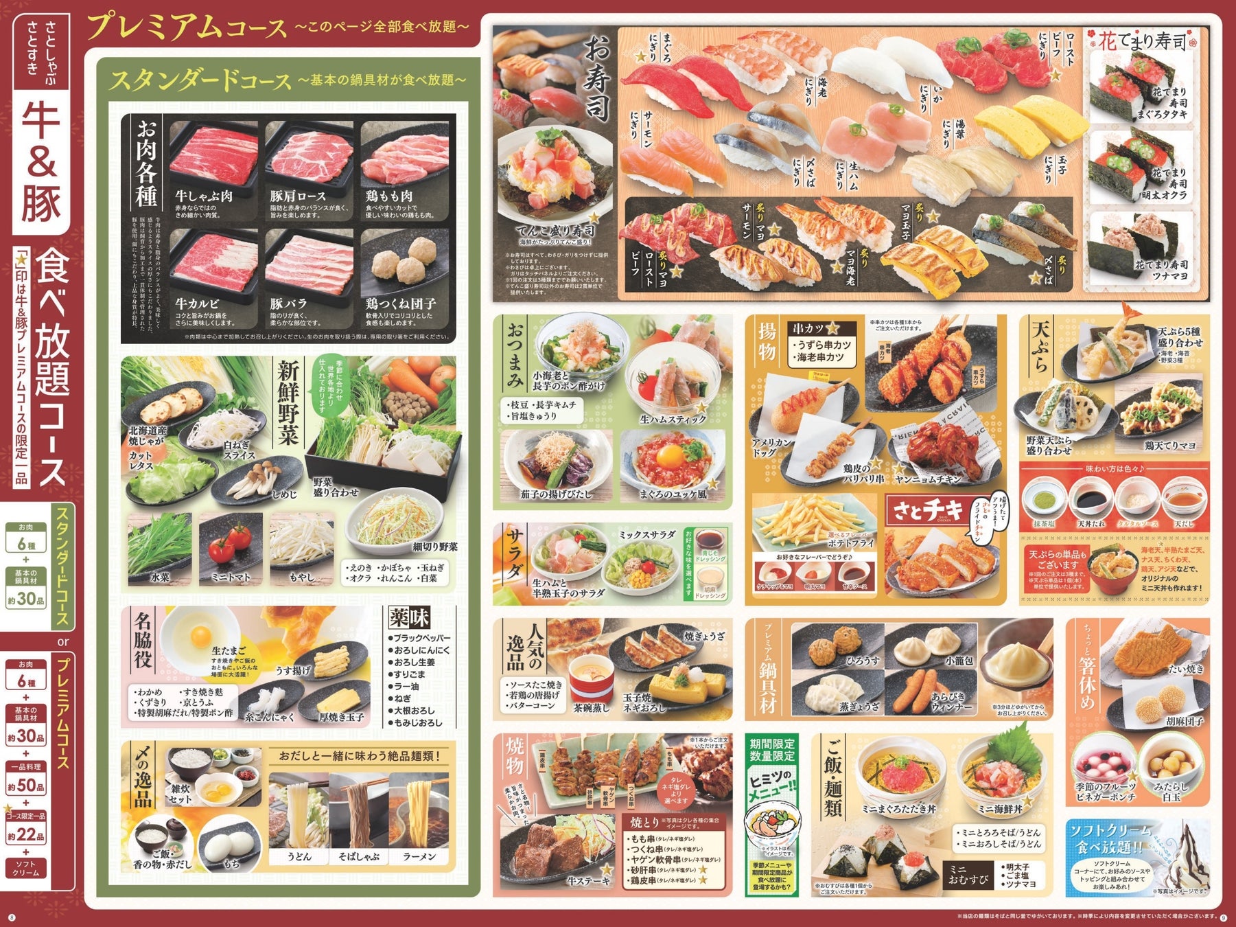 そして、和食さとの食べ放題メニュー「さと式焼肉・さとしゃぶ・さとすき」では、人気のプレミアムコースで食べ放題の一品料理がリニューアル!!