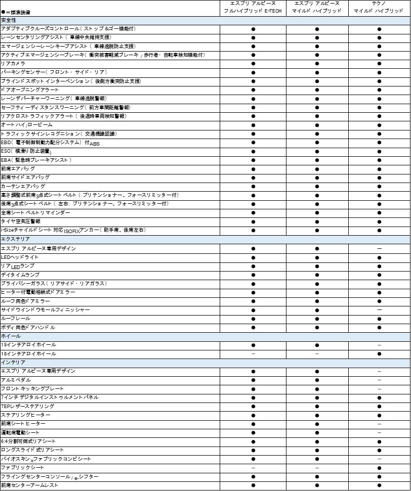 エスプリ アルピーヌには19インチアロイホイールが、テクノには18インチアロイホイールが装着されます。