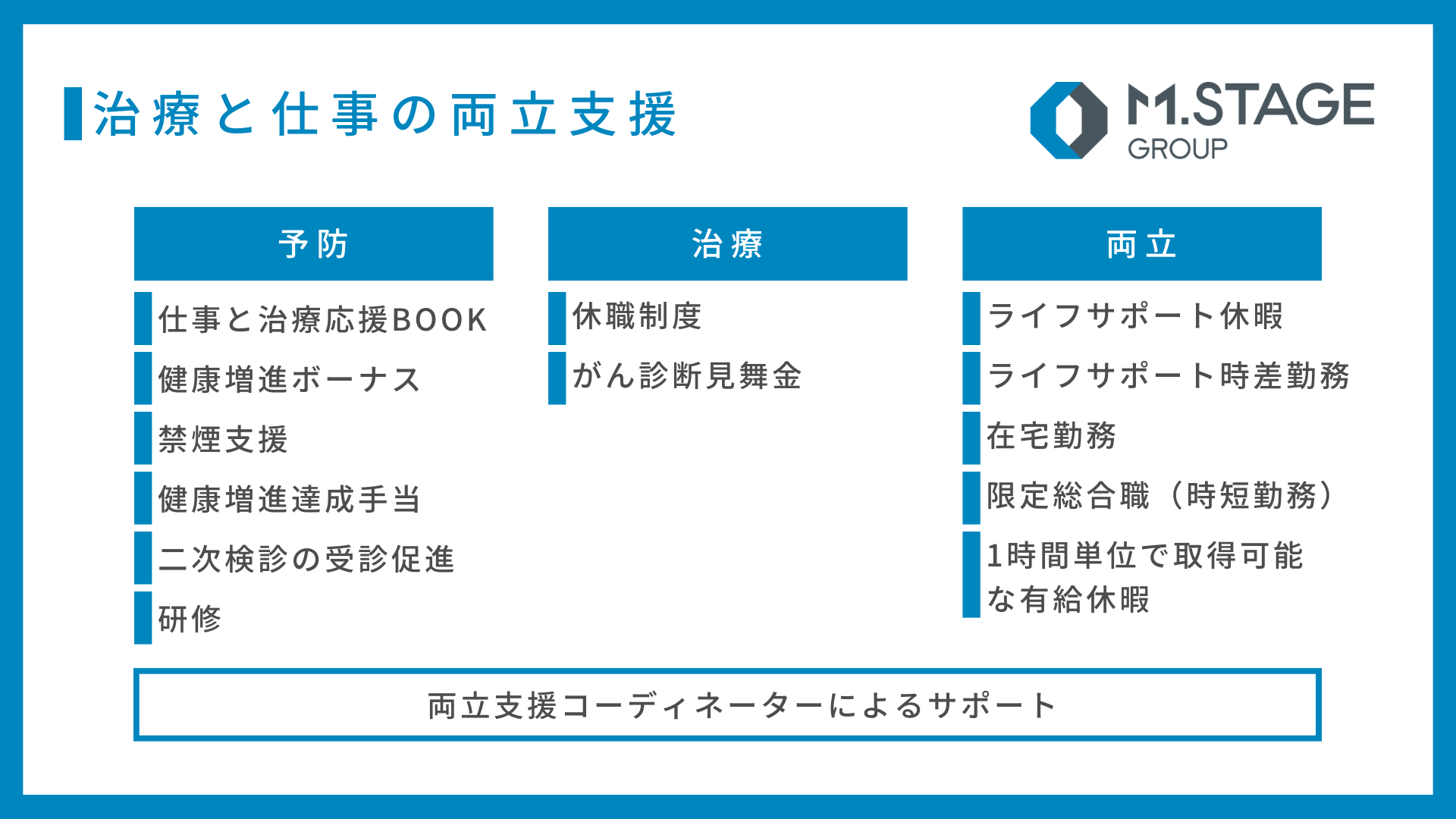 エムステージ、「治療と仕事の両立支援制度」開始