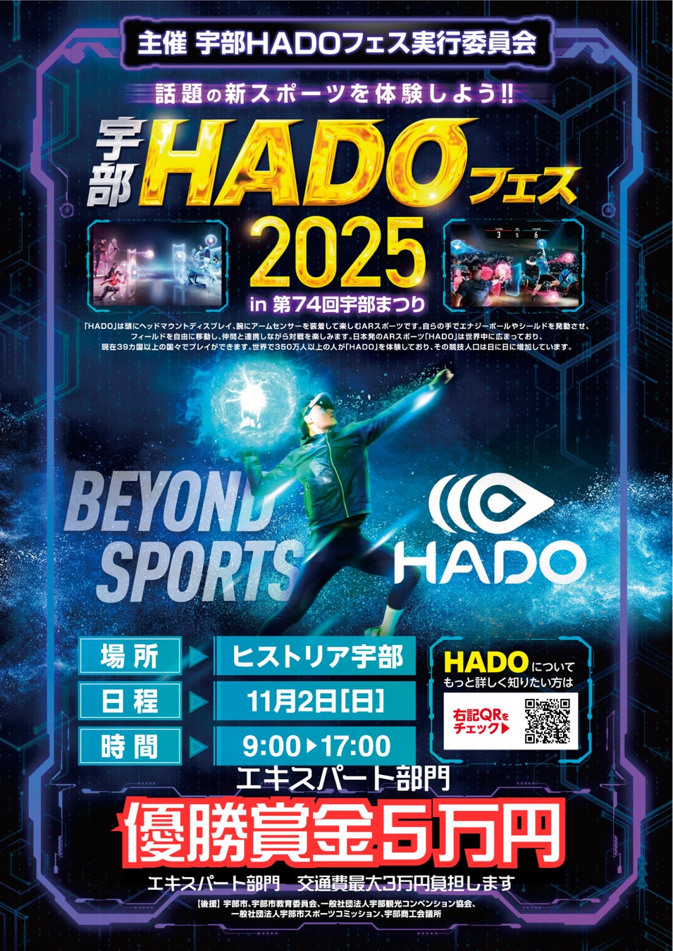 2025年11月2日(日)、山口県宇部市のヒストリア宇部にて、リアル×デジタルの“次世代AR体験”を楽しめる『宇部HADOフェス2025』が開催されます。