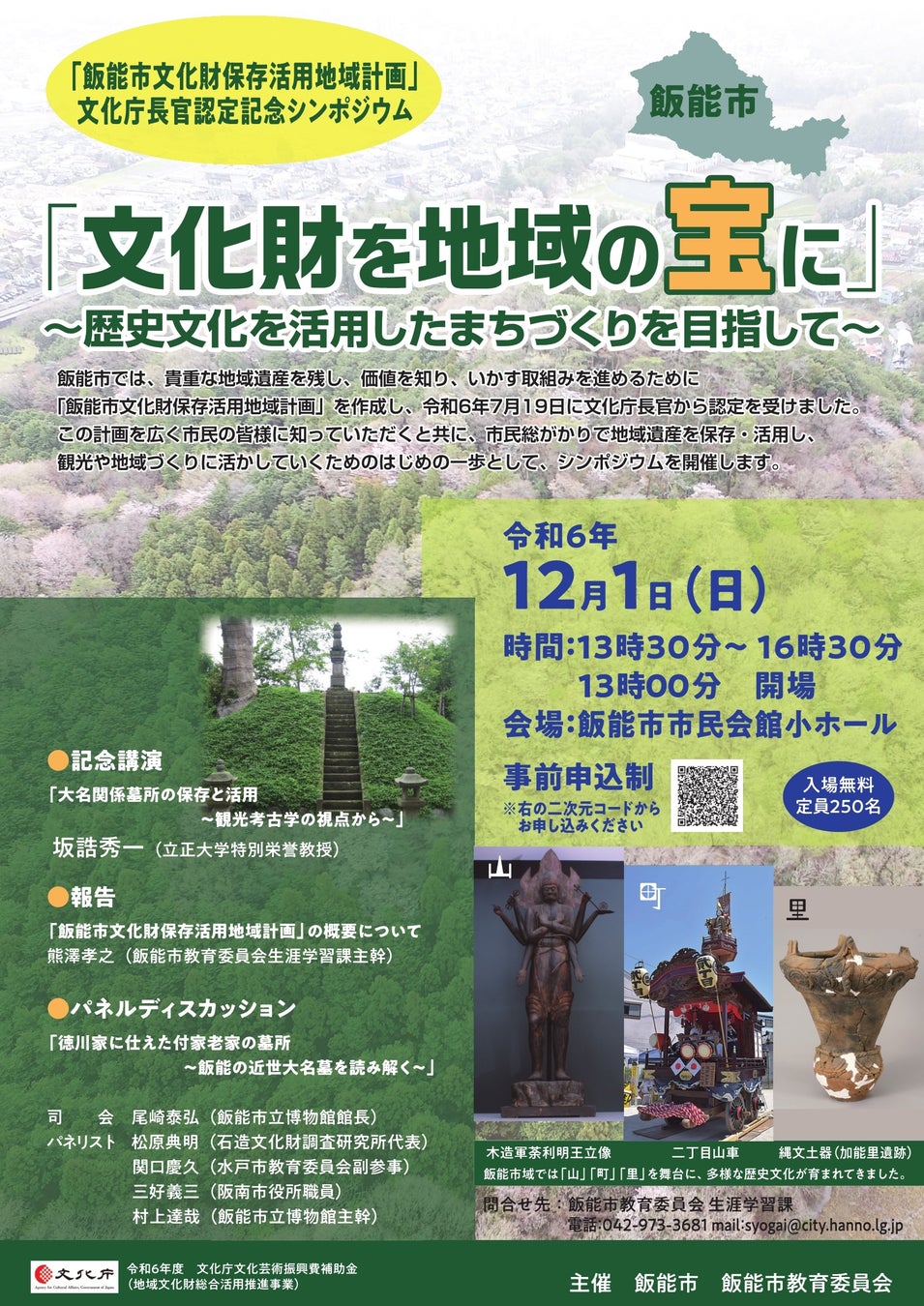 【埼玉県飯能市】「飯能市文化財保存活用地域計画」文化庁長官認定記念シンポジウムを開催します