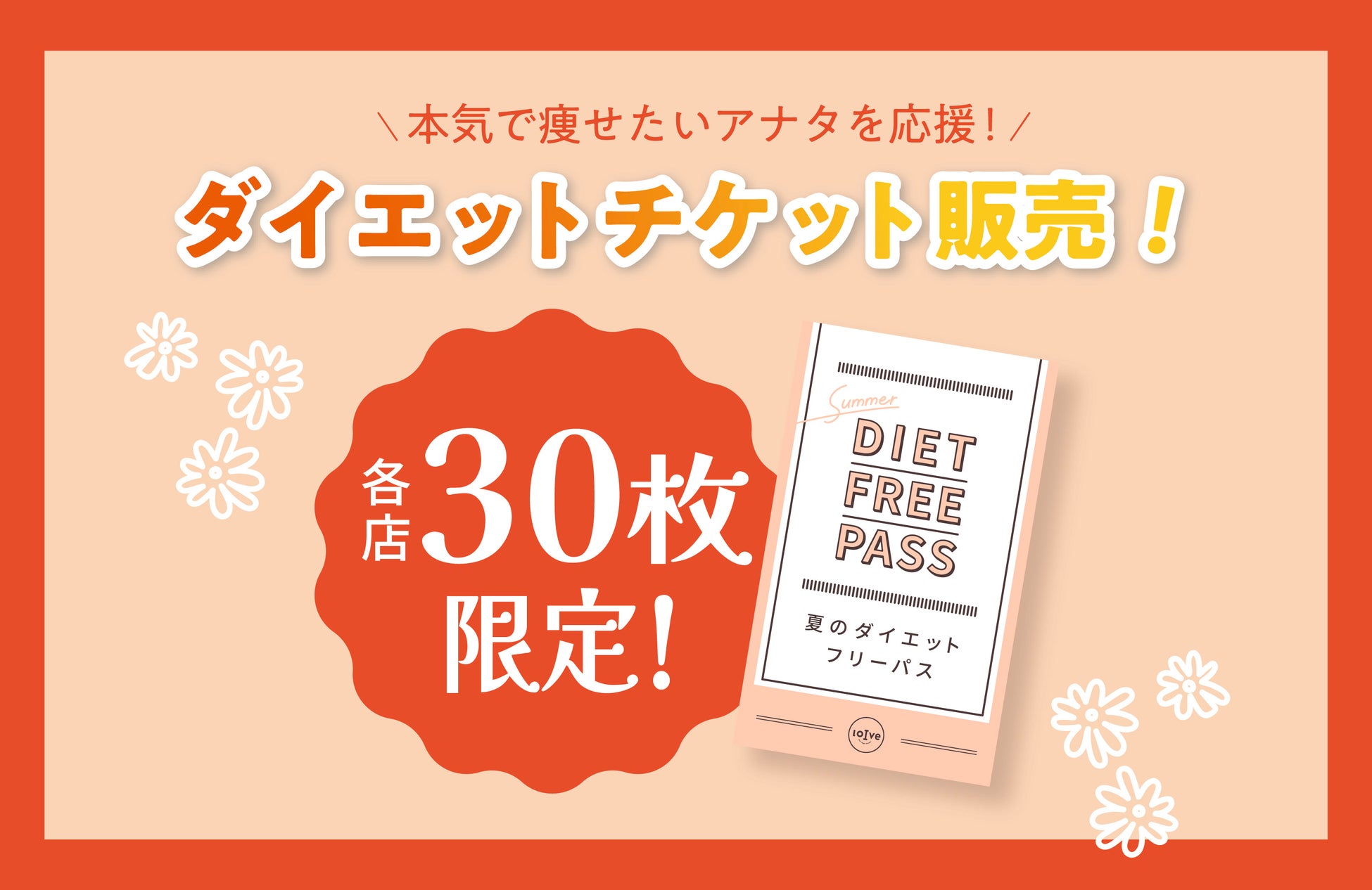 毎年大人気、1日1回通える「夏のダイエットフリーパス」を、今年も各店限定30枚で販売。本気で自分を変えたいあなたを応援します。