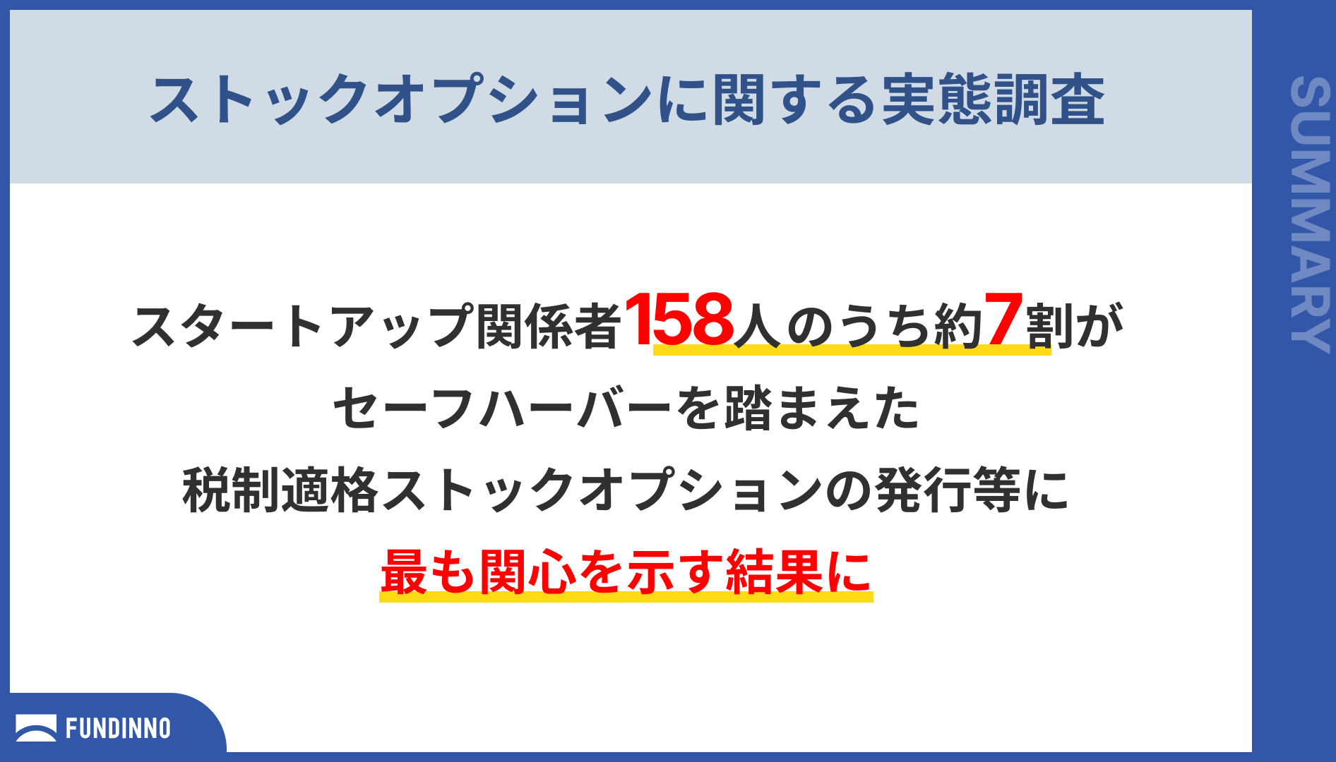〜対象者の約7割が「セーフハーバーを踏まえた税制適格ストックオプションの発行等」に関心を示す結果に〜