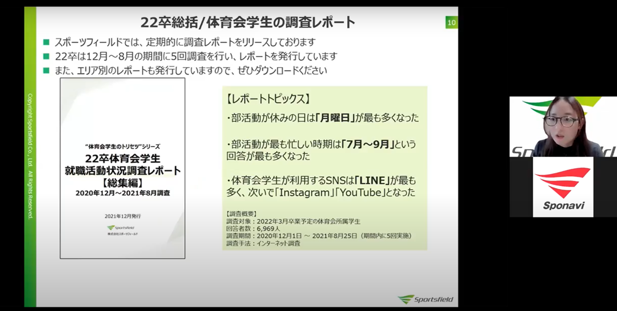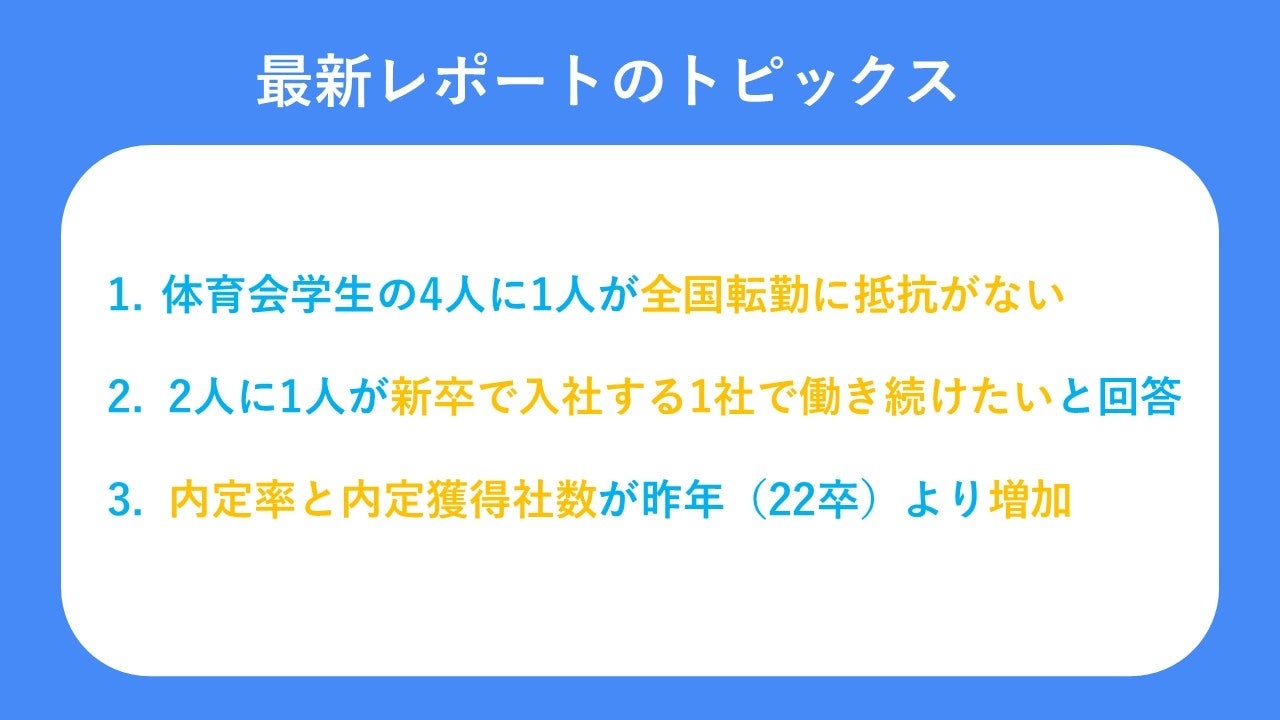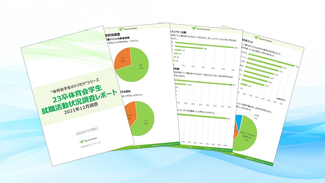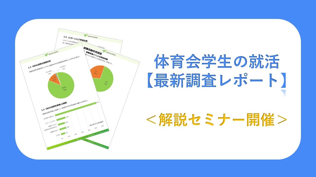 体育会・スポーツ学生のための就職活動支援サイト「スポナビ」を運営する株式会社スポーツフィールド(代表取締役:篠﨑 克志)は、23卒の大学生を対象とした最新のアンケート調査レポートをリリースいたしました。