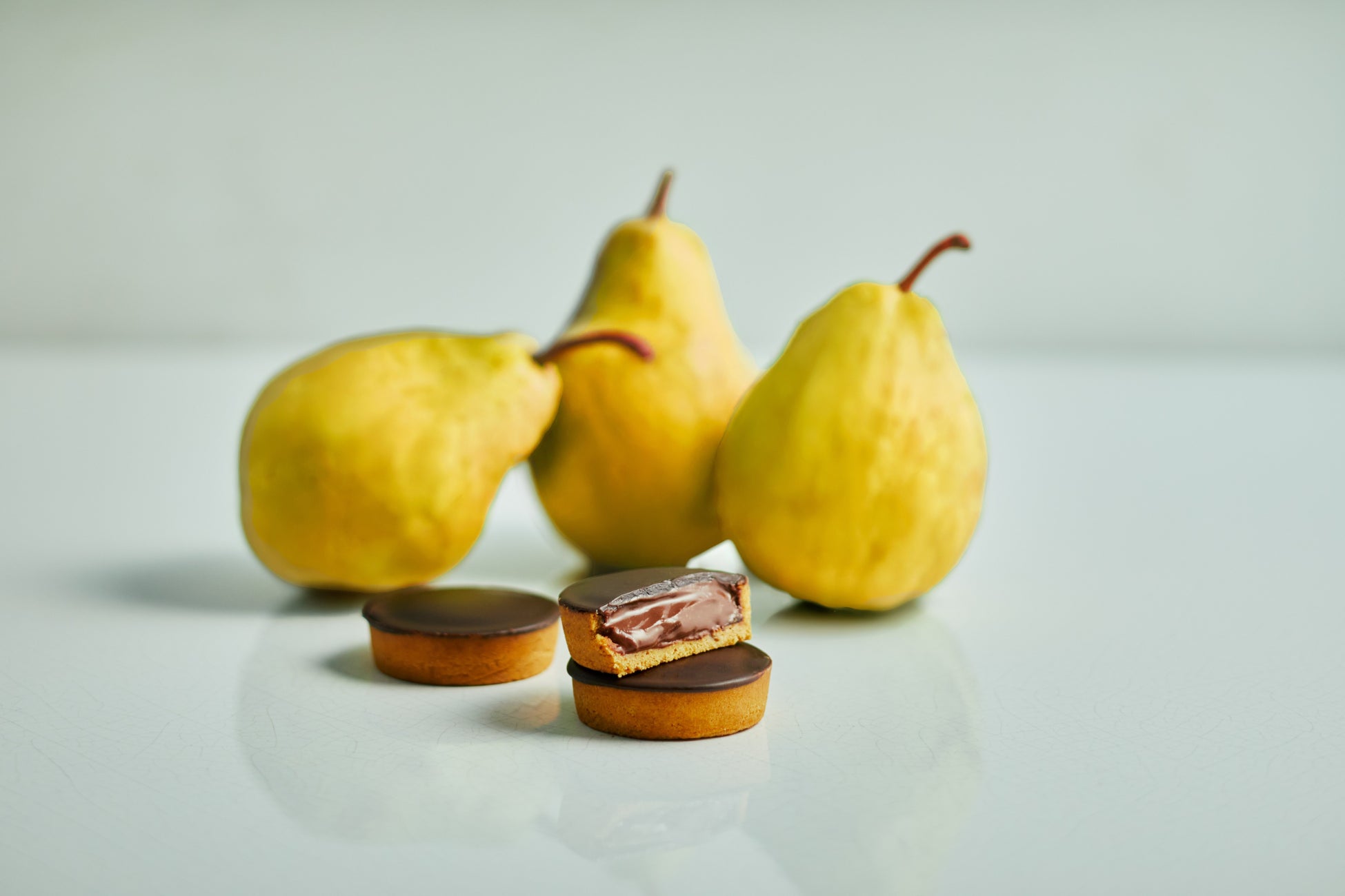 リッチ生チョコタルトは、シンプルな美しさに拘りながら、味わいと食感を4層で作り込んだ一品です。手焼きのタルト生地の中に水分量の高い生チョコレートのクリームを流し込みます。限定の味わいは「旅するメゾン」佐渡島で丁寧に育て、追熟まで行うことで芳醇な味わいが広がる希少な洋梨、ルレクチェを主役にしました。最後に表面をチョコレートでコーティングすることで、香りを閉じ込めています。※ジェイアール名古屋タカシマヤ限定販売です。