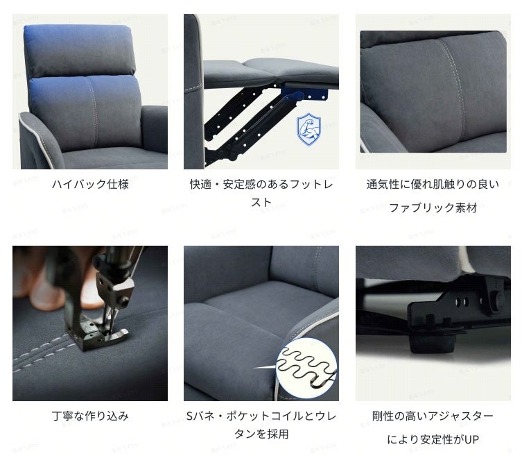 丁寧な作り込みと高品質な素材で、贅沢なくつろぎを提供します。フットレストは快適さと安定性を兼ね備え、身体をしっかり支えます。さらに、『XC3』では通気性が良く肌触りに優れたファブリック素材を使用することで、四季を通じて快適な使用が可能です。