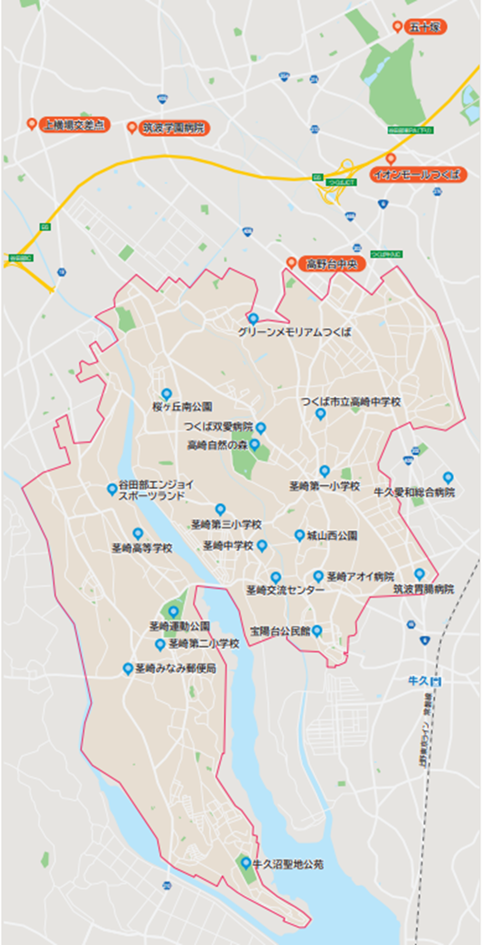 茎崎地区から移動可能な谷田部地区の特例ポイント