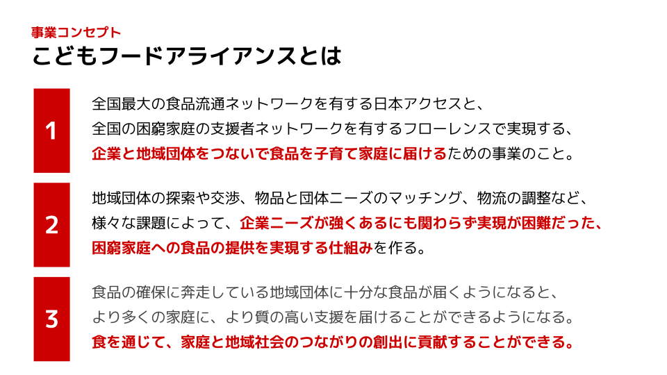- 食品メーカーからの食品寄付を全国子育て家庭に届ける「こどもフードアライアンス」